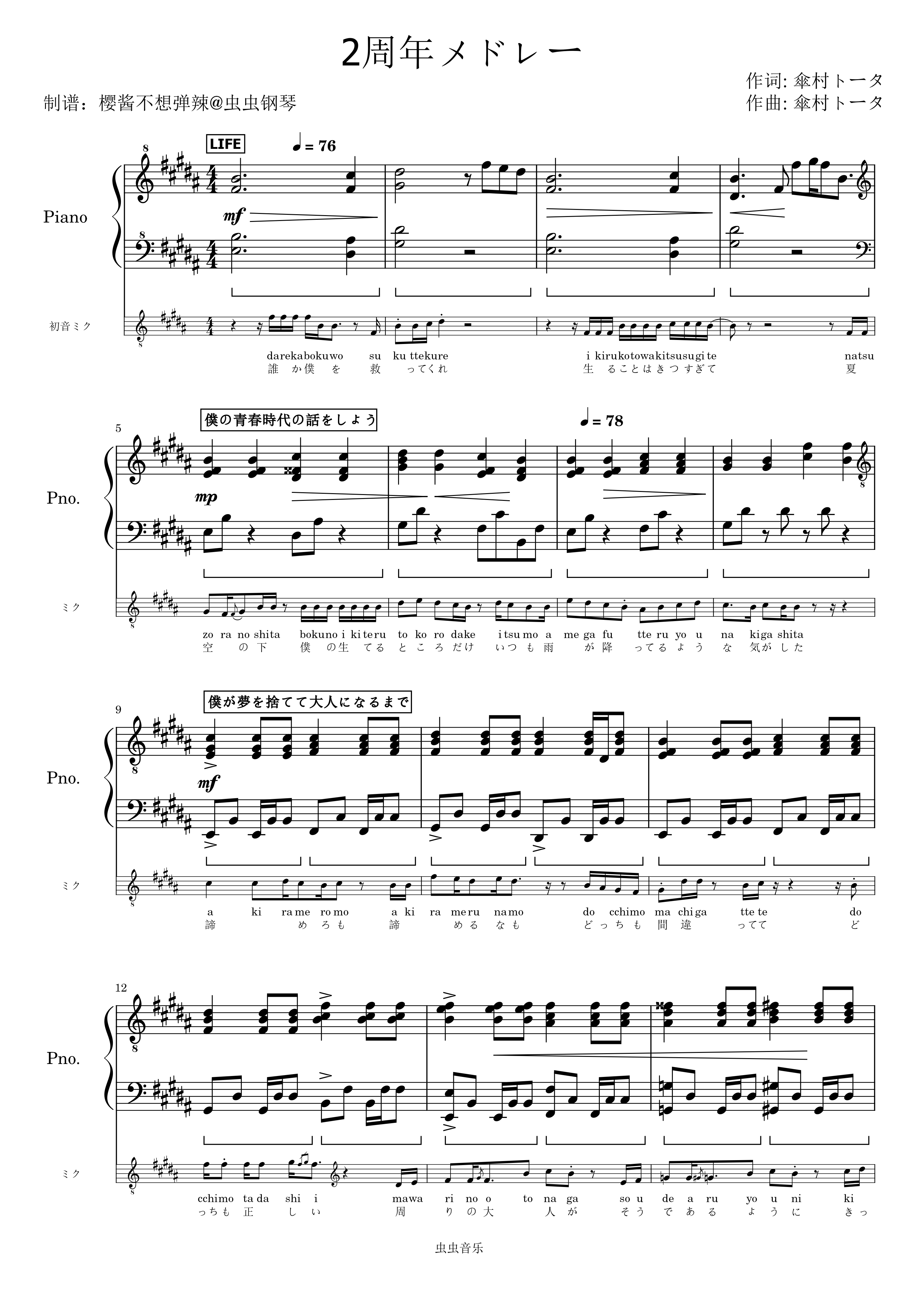 • 恋愛サーキュレーション钢琴简谱 E调 数字双手 meg rock