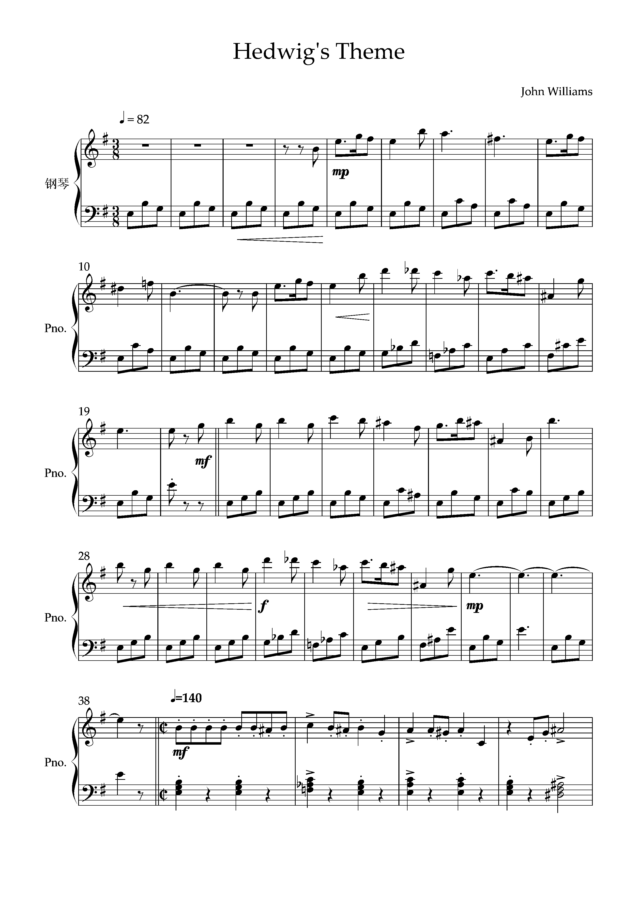 • Hedwig's Theme钢琴简谱 e调 数字双手