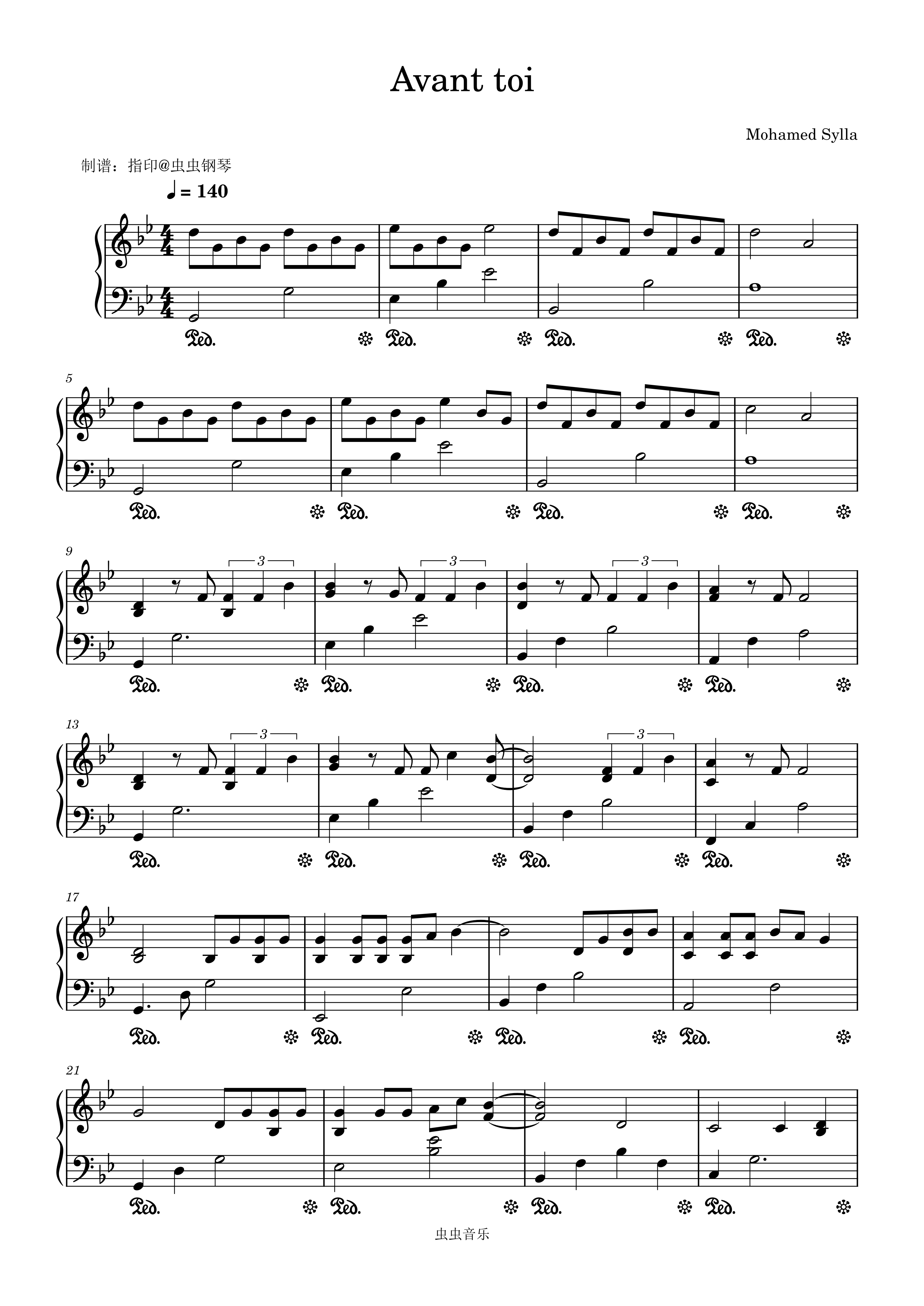 Avant toi钢琴简谱 数字双手 Vitaa、Slimane