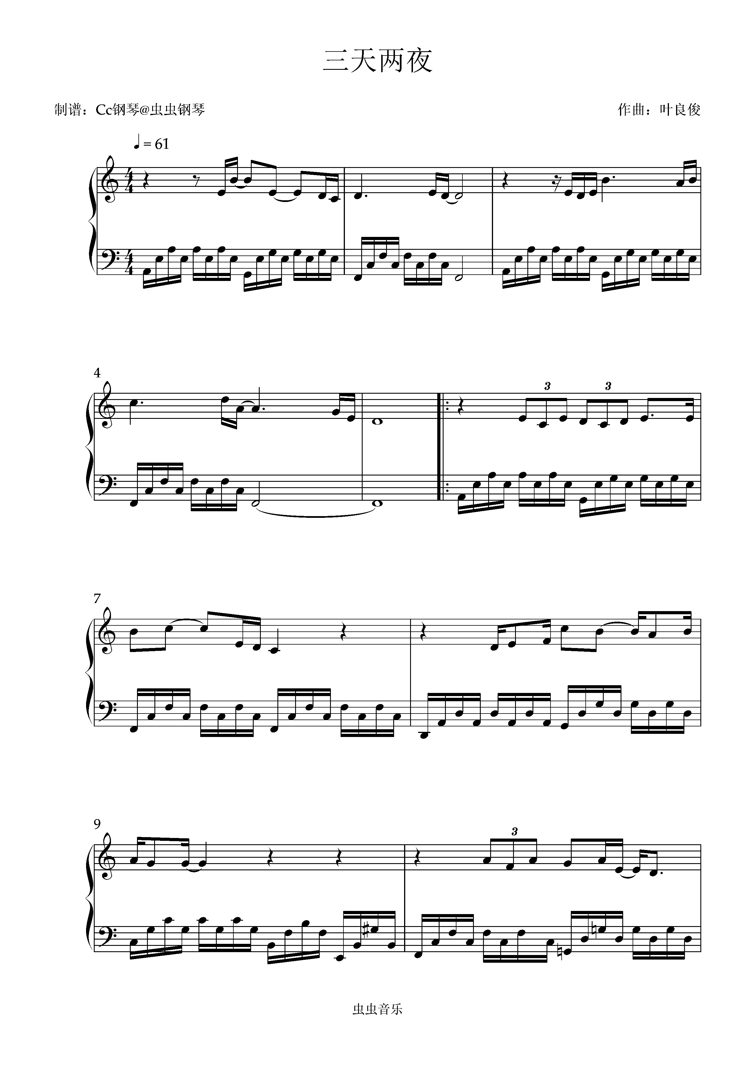 • 夜夜夜夜钢琴简谱 Eb调 数字双手 熊天平