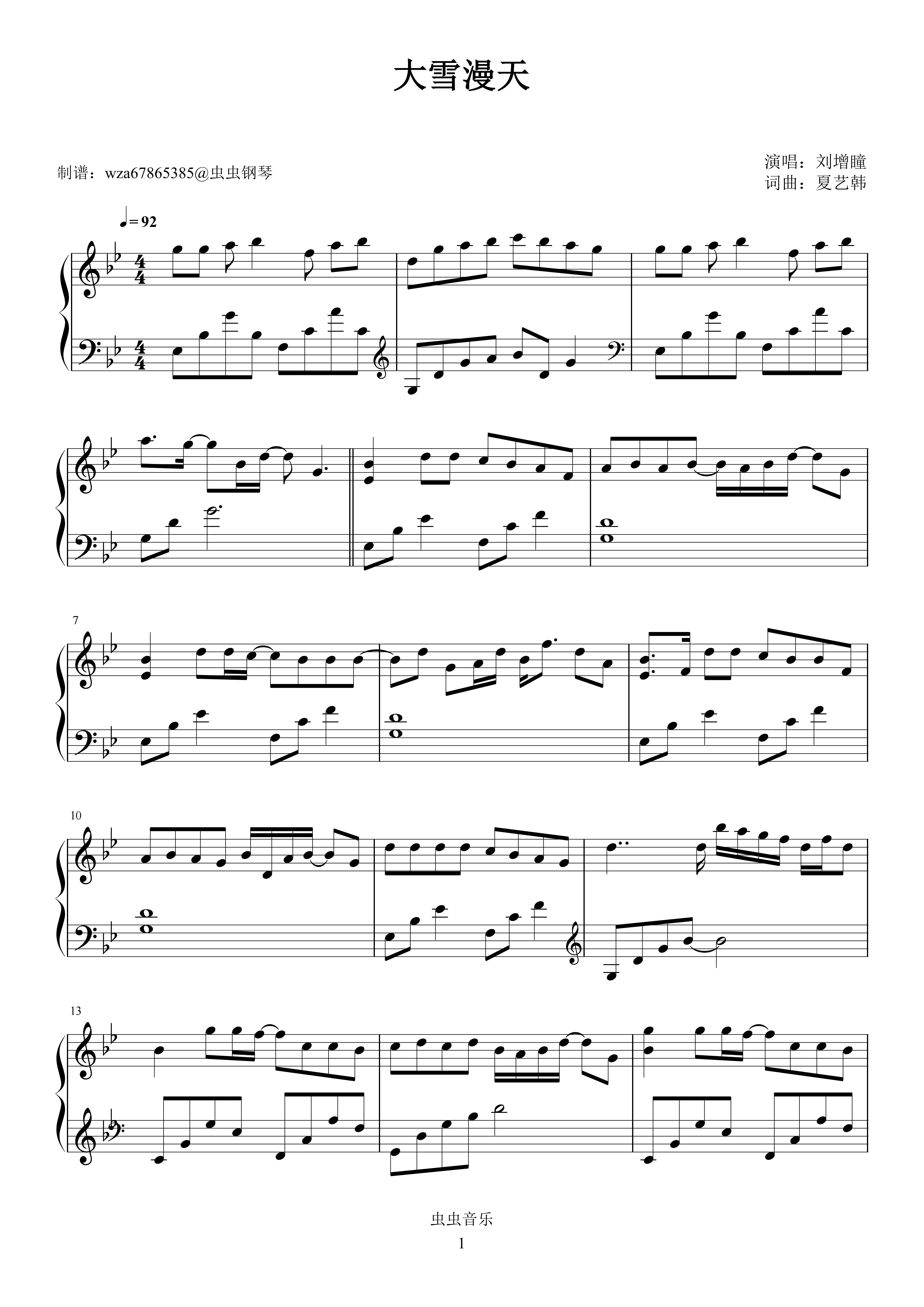 大雪漫天钢琴简谱 数字双手 夏艺韩