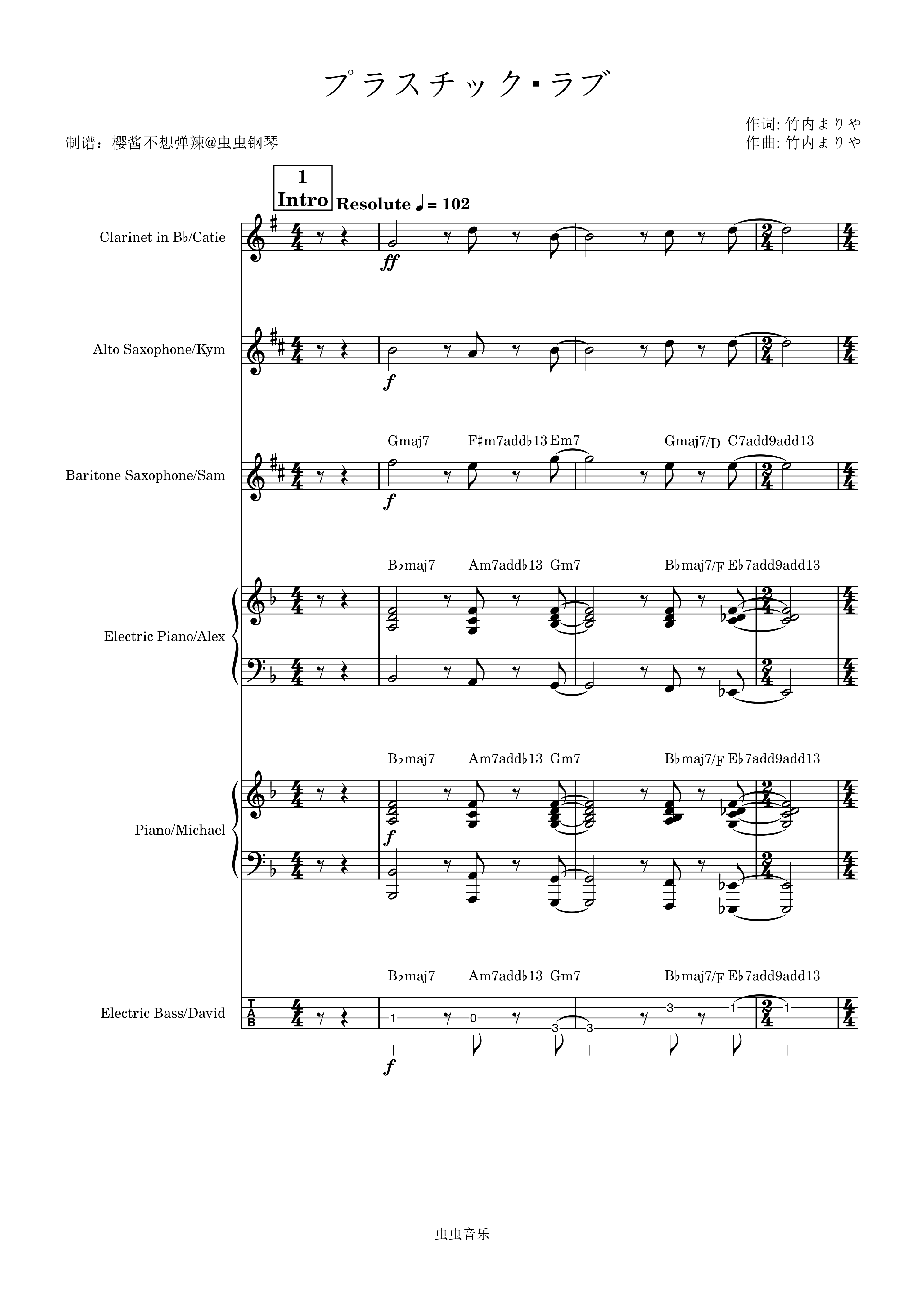 钢琴谱:Plastic Loveプラスティック・ラヴ (塑料般的爱) 竹内まりや