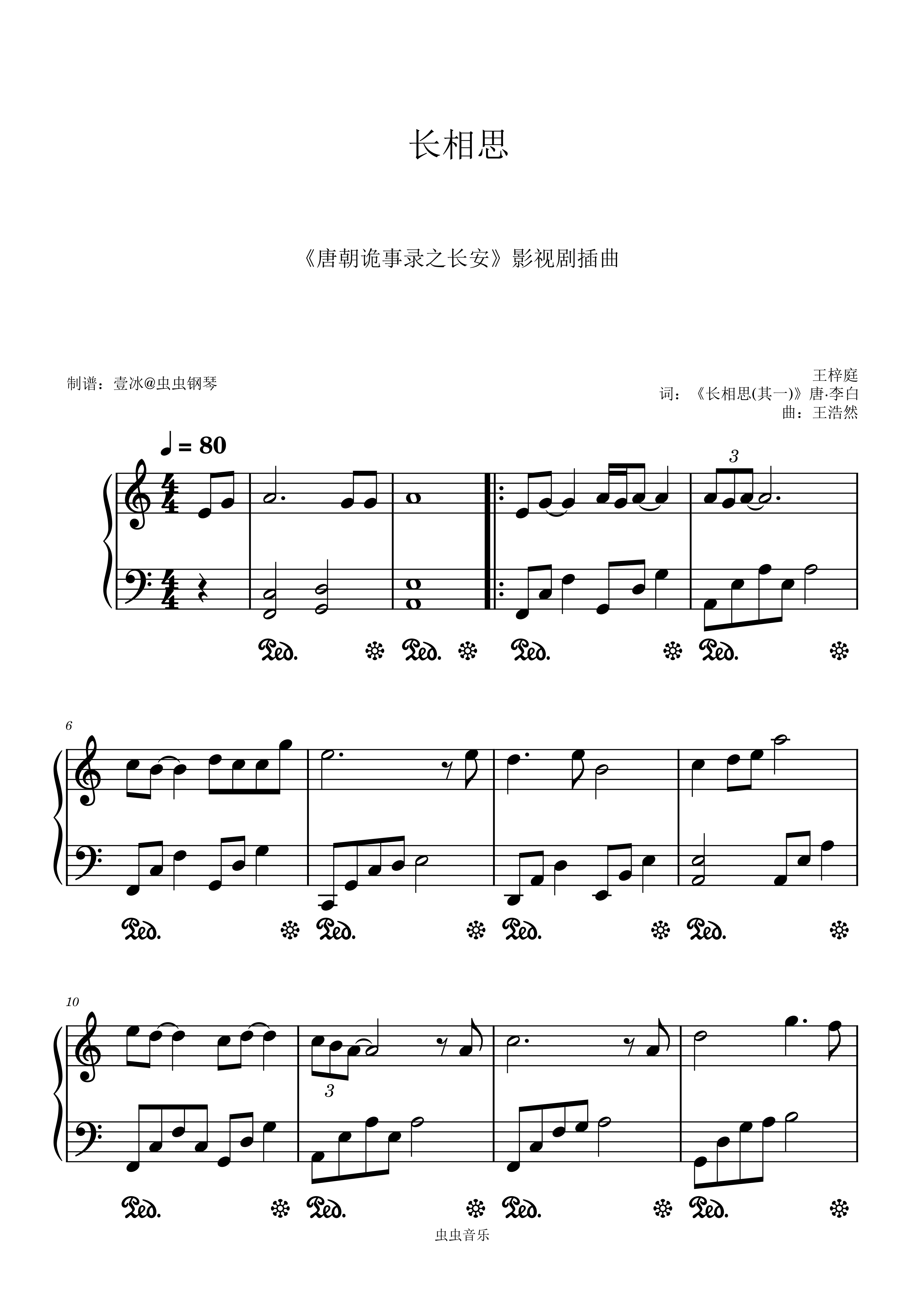钢琴谱:长相思 (《唐朝诡事录之长安》影视剧插曲) - C调