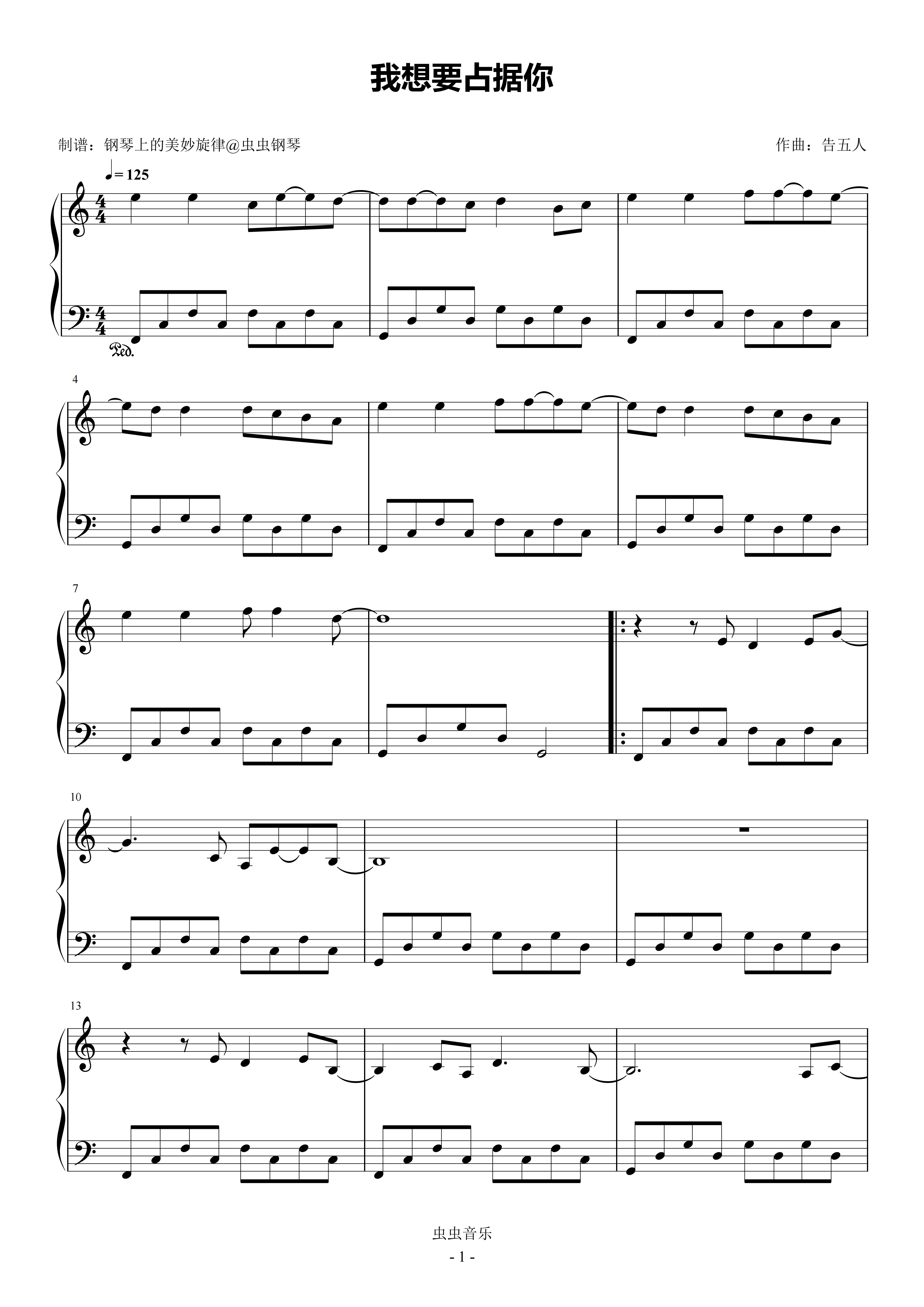 • 我想要钢琴简谱 C调 数字双手 小青争