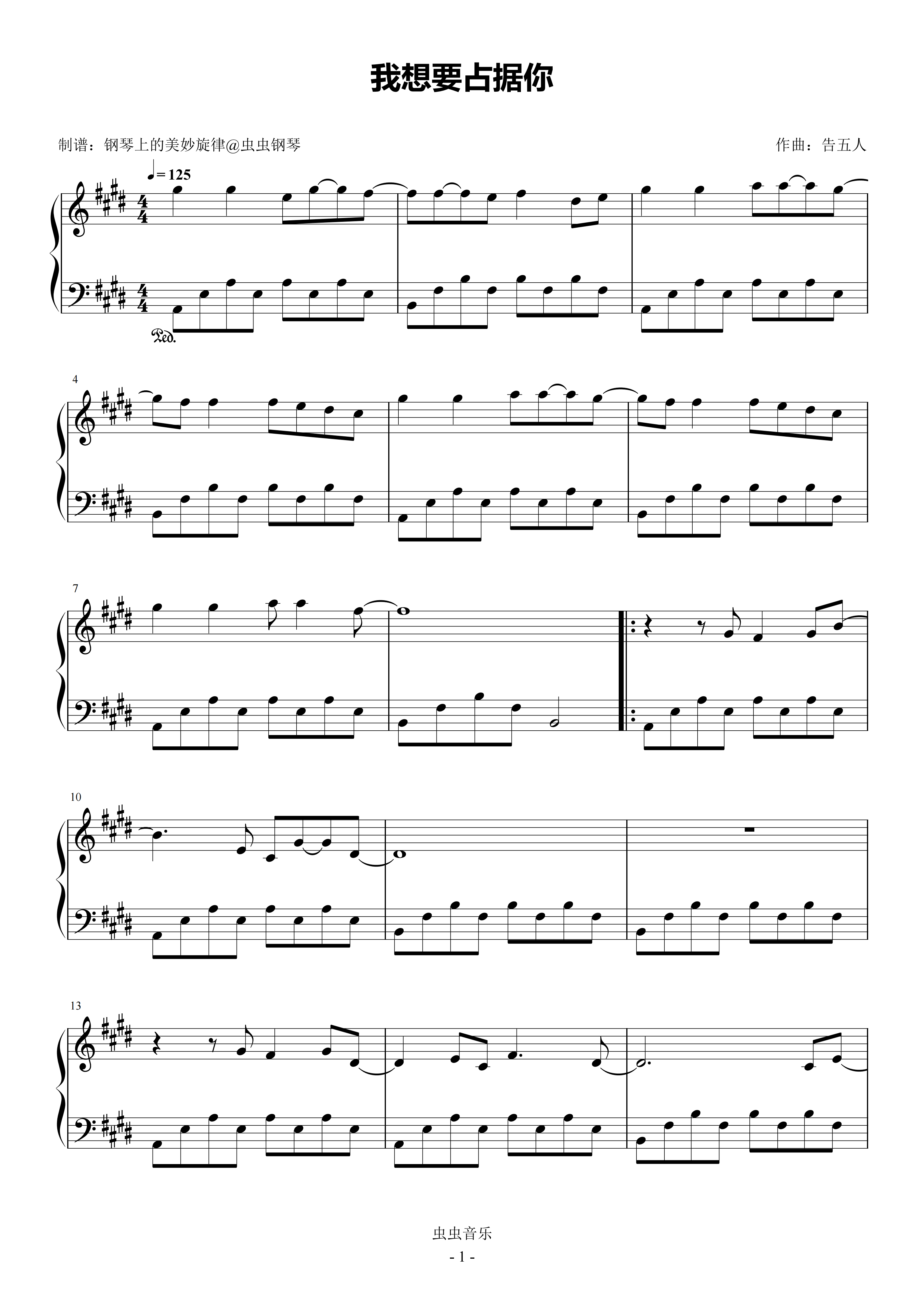 • 我想要钢琴简谱 C调 数字双手 小青争