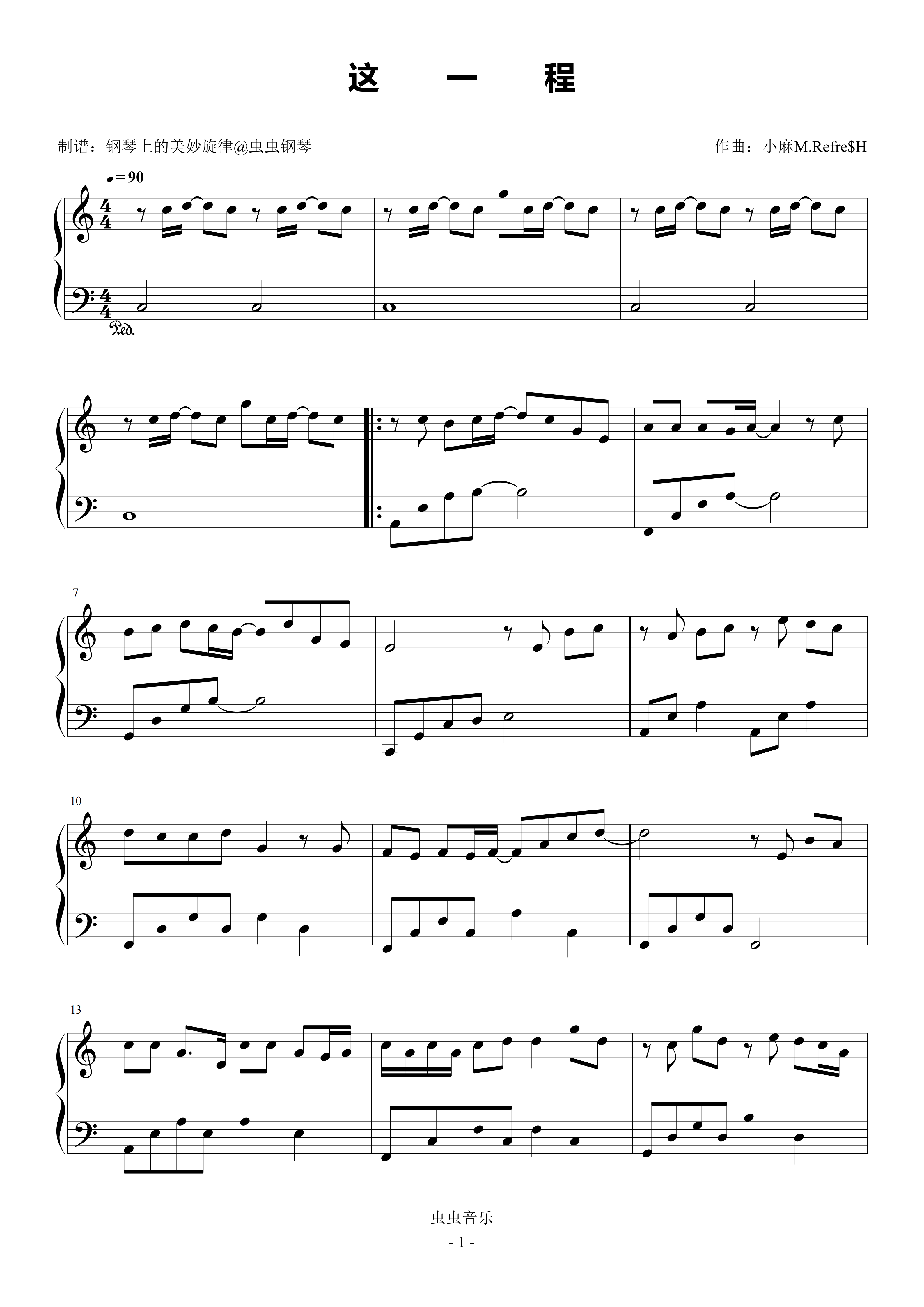 • 一程山路钢琴简谱 F#调 数字双手 毛不易