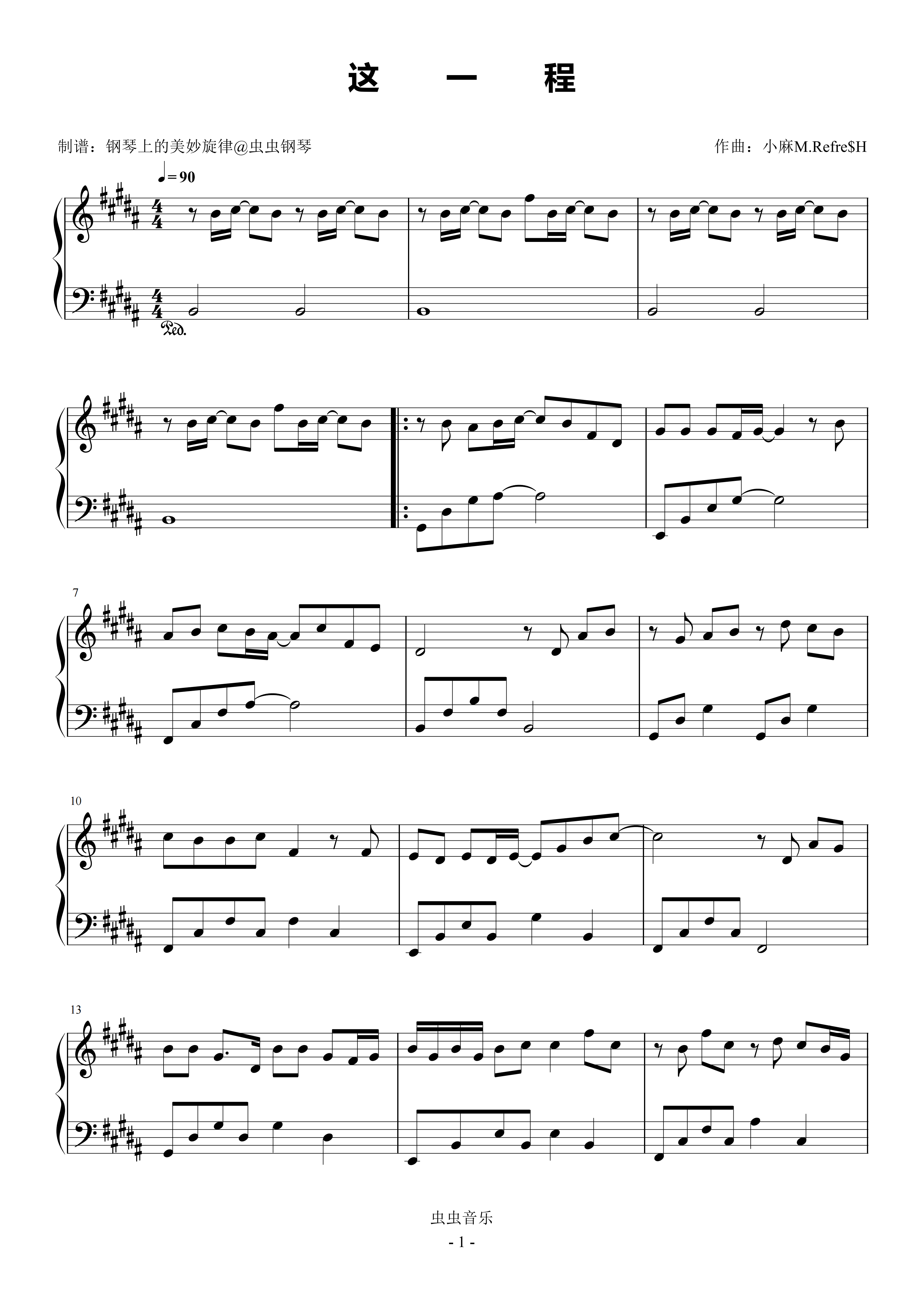钢琴谱:这一程 原调简易版 时代少年团