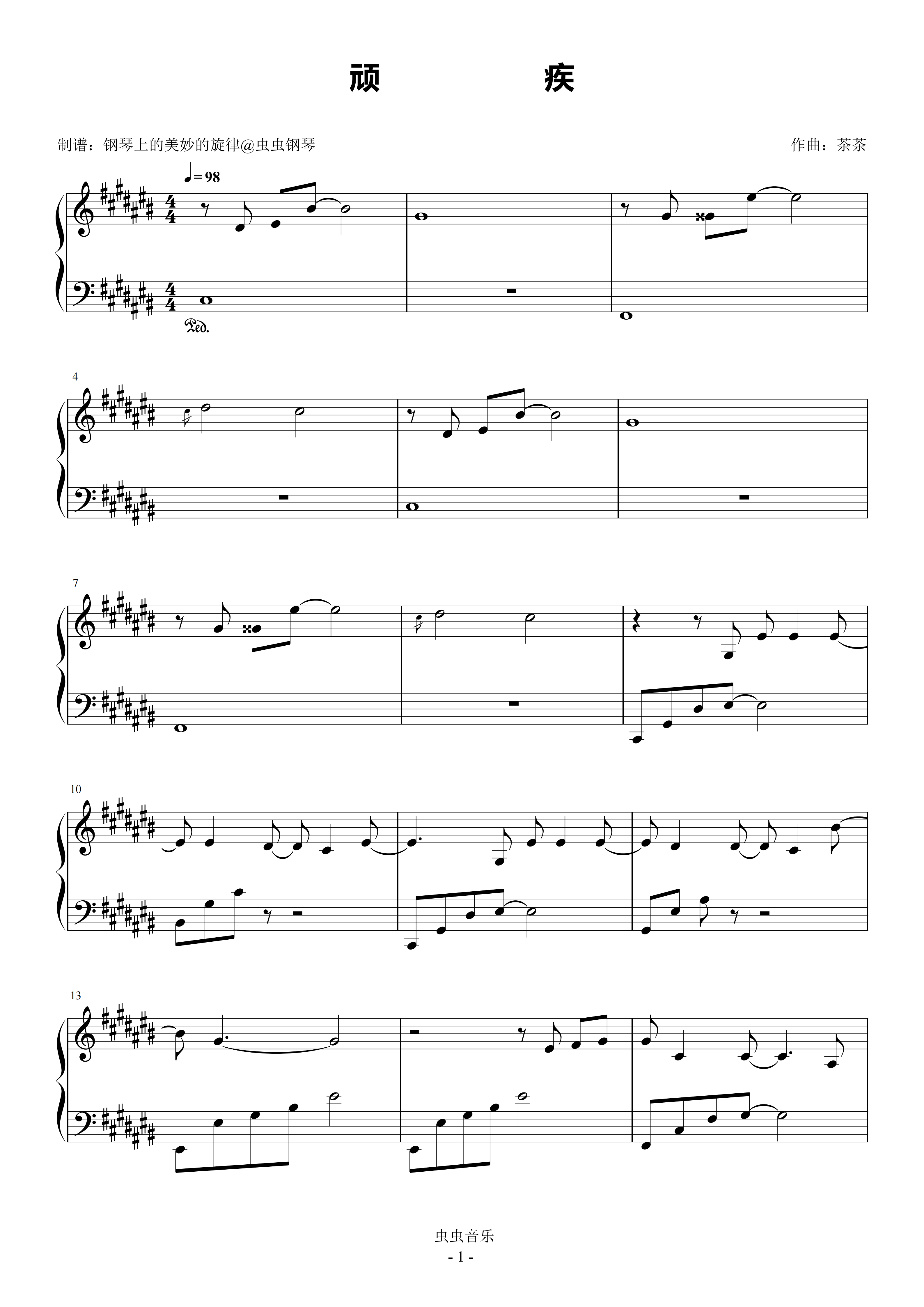 顽疾钢琴简谱 数字双手 茶茶