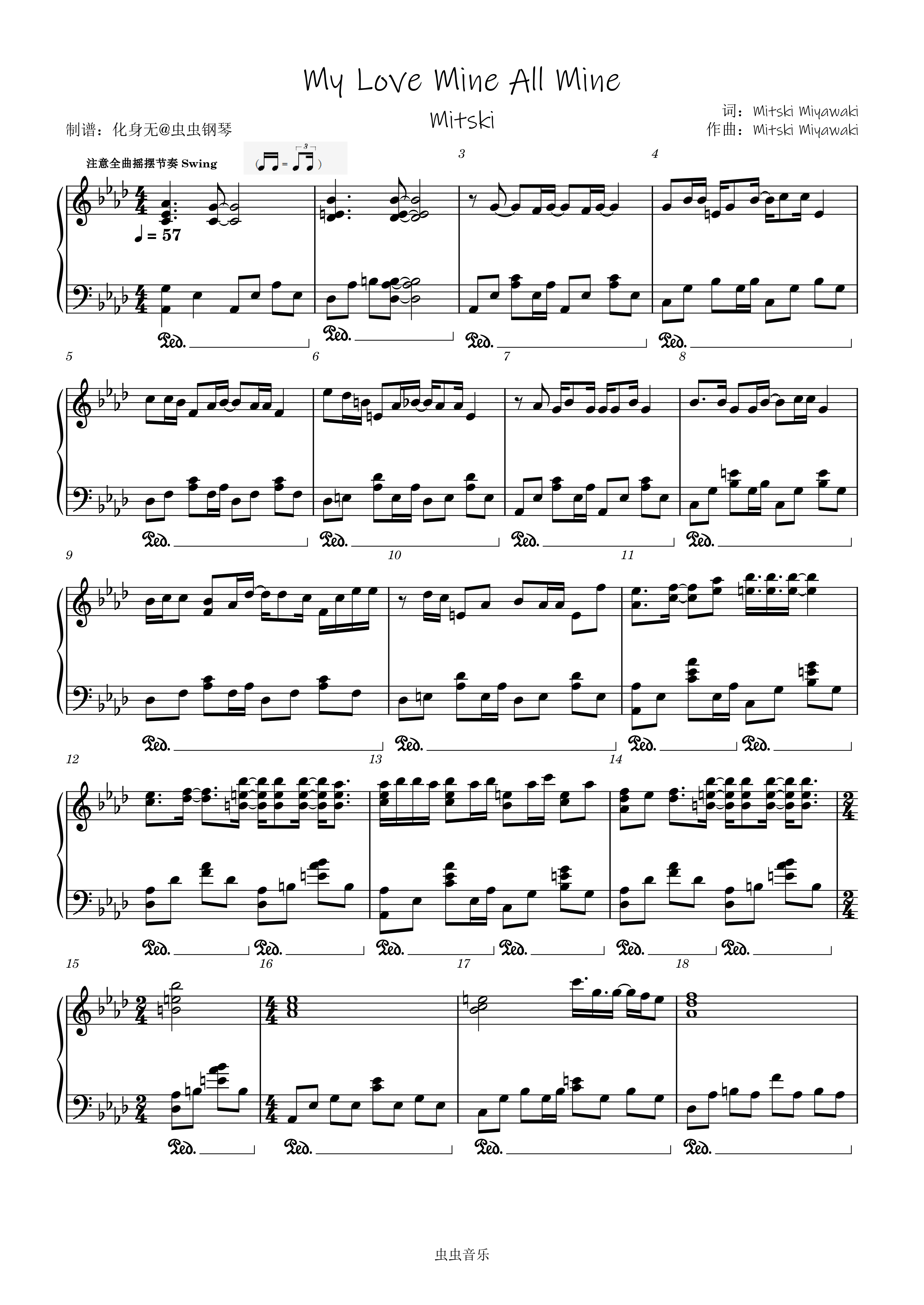 钢琴谱:My Love Mine All Mine 原调独奏版 化身无编配