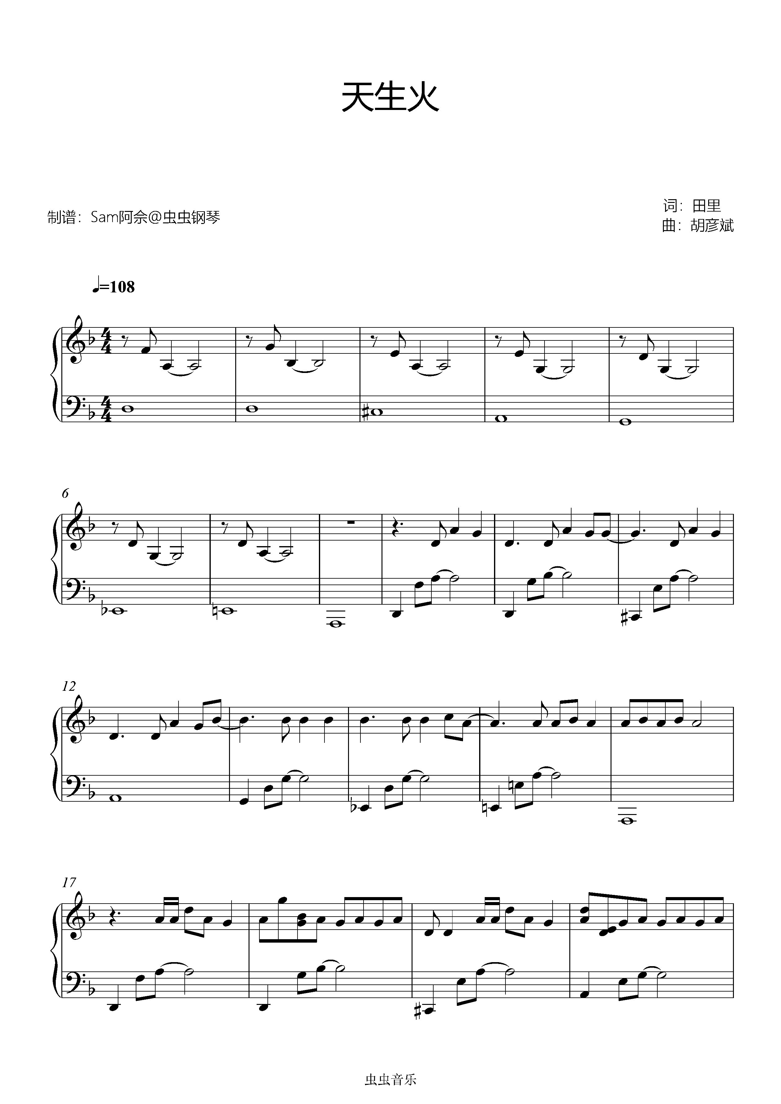 钢琴谱:原调《天生火》胡彦斌(电视剧《枭起青壤》主题曲)