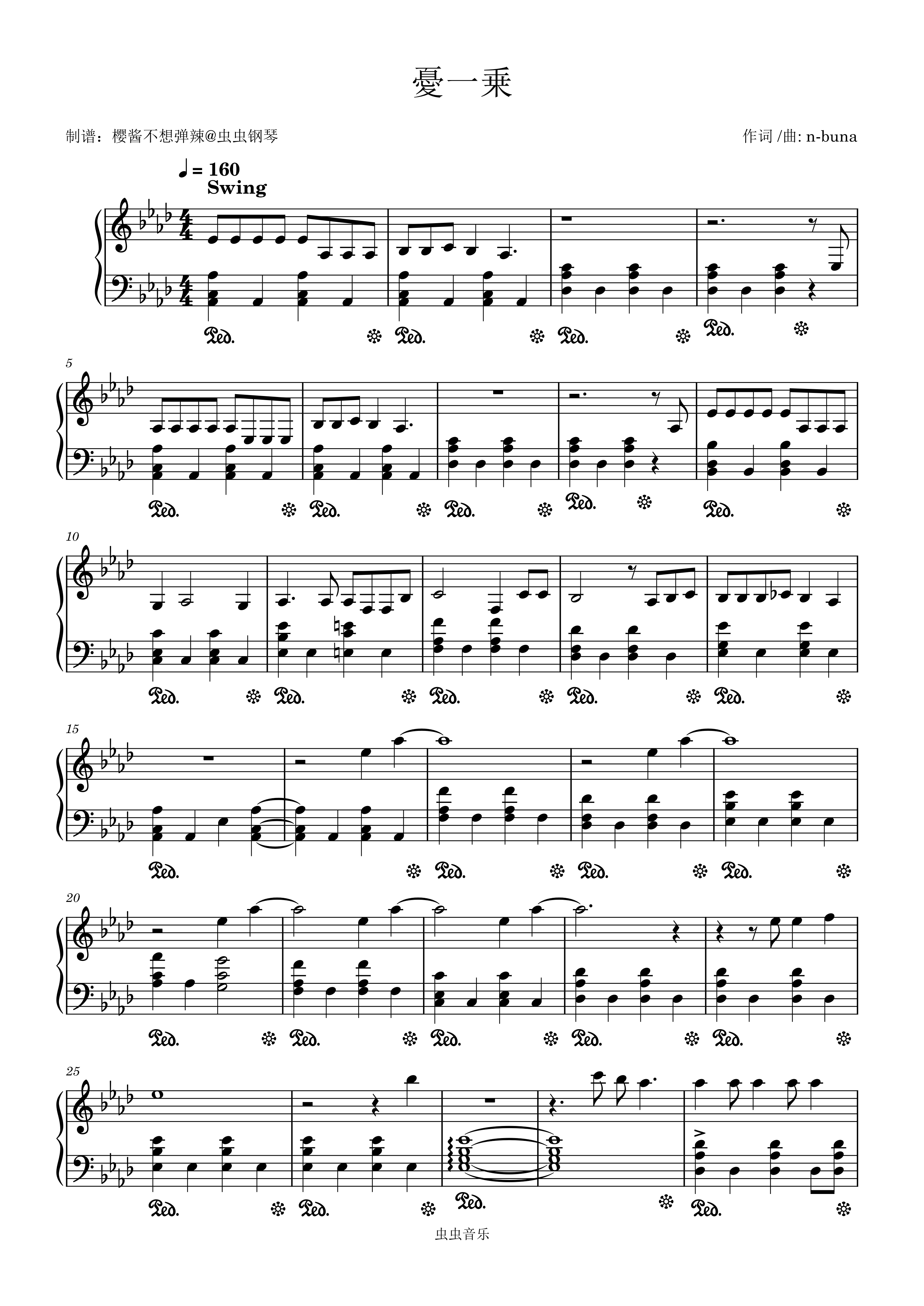 • 一荤一素钢琴简谱 E调 数字双手 毛不易