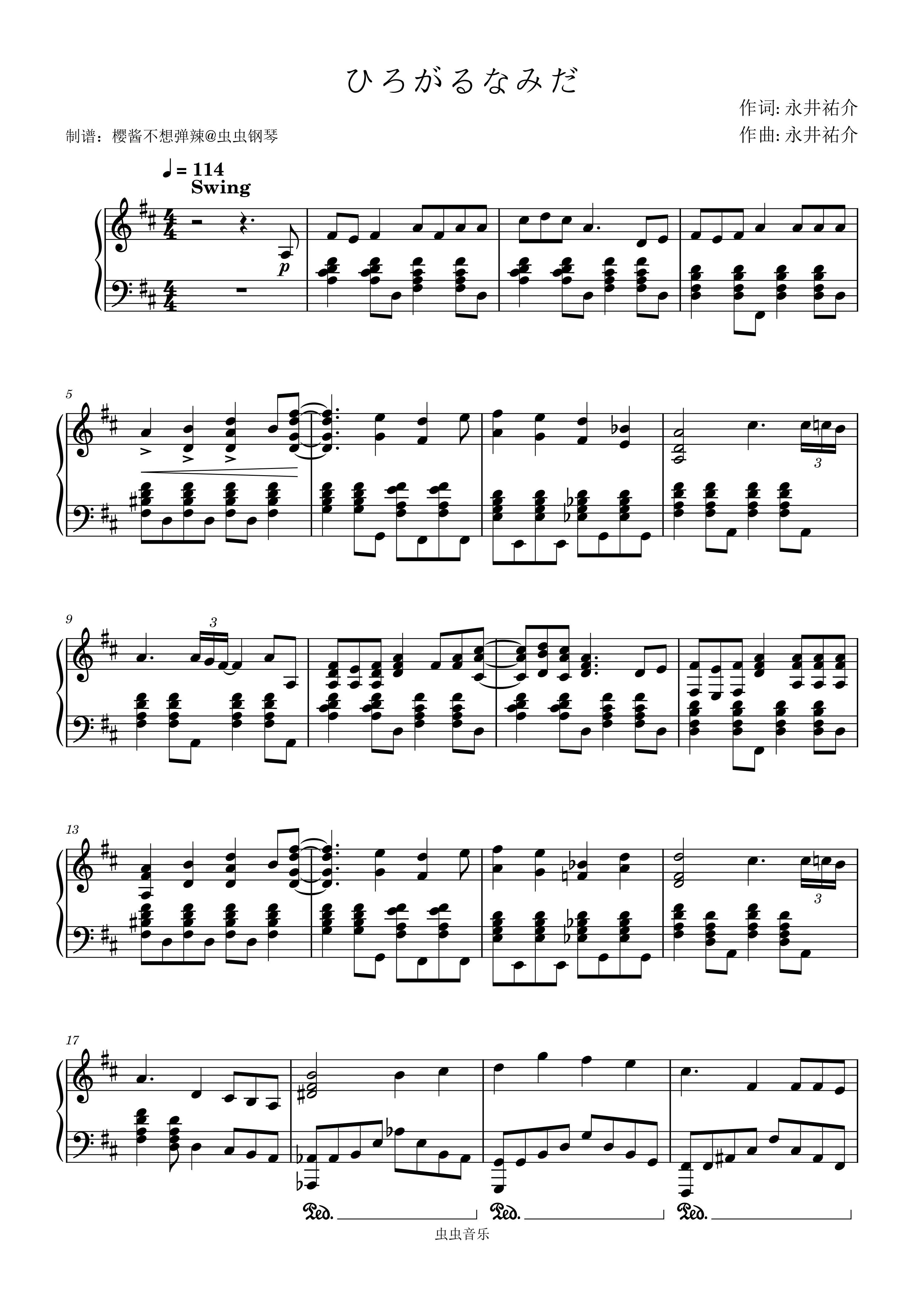 ひろがるなみだ钢琴简谱 数字双手