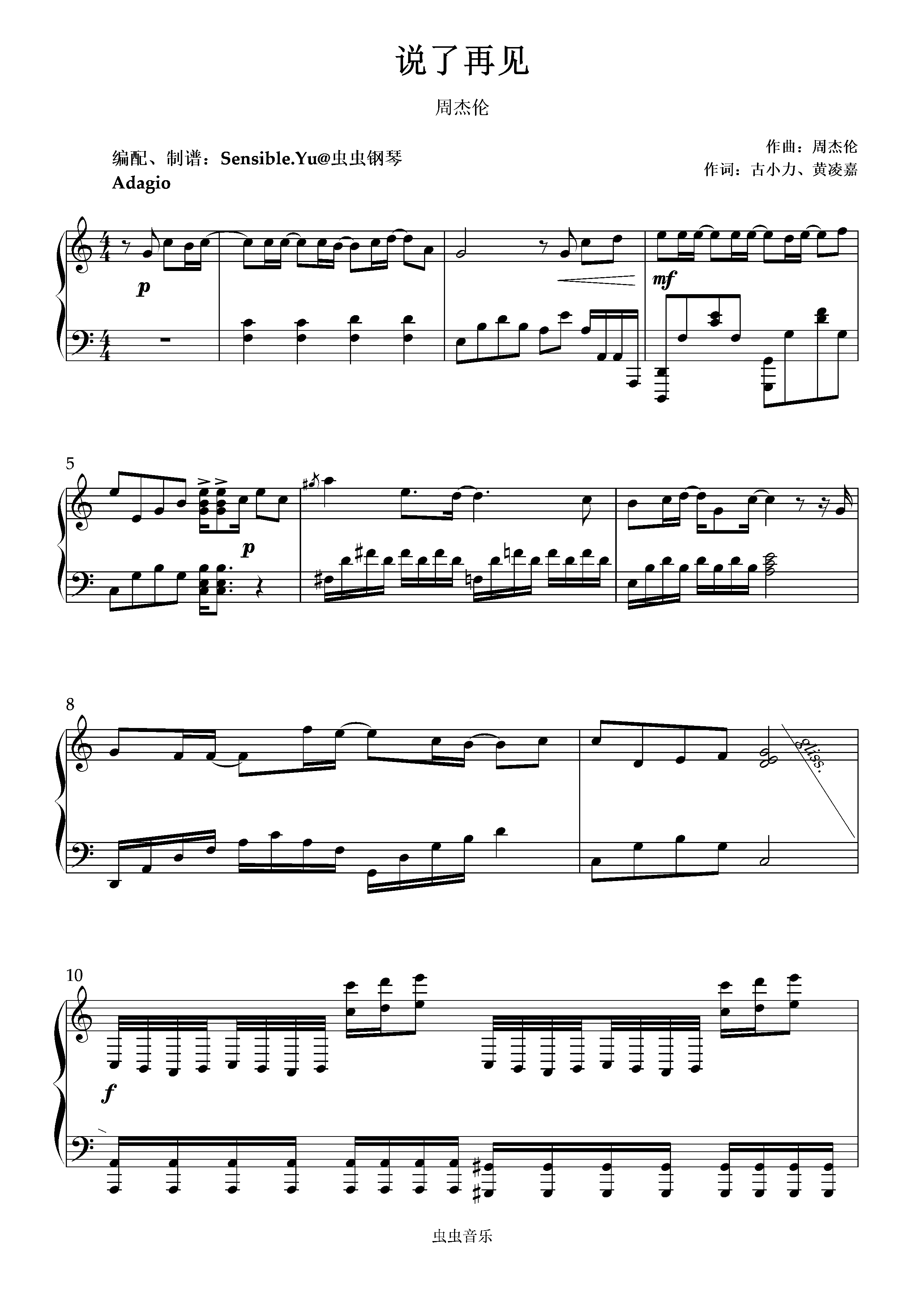 钢琴谱:《说了再见》——周杰伦(编配:Sensible.Yu)