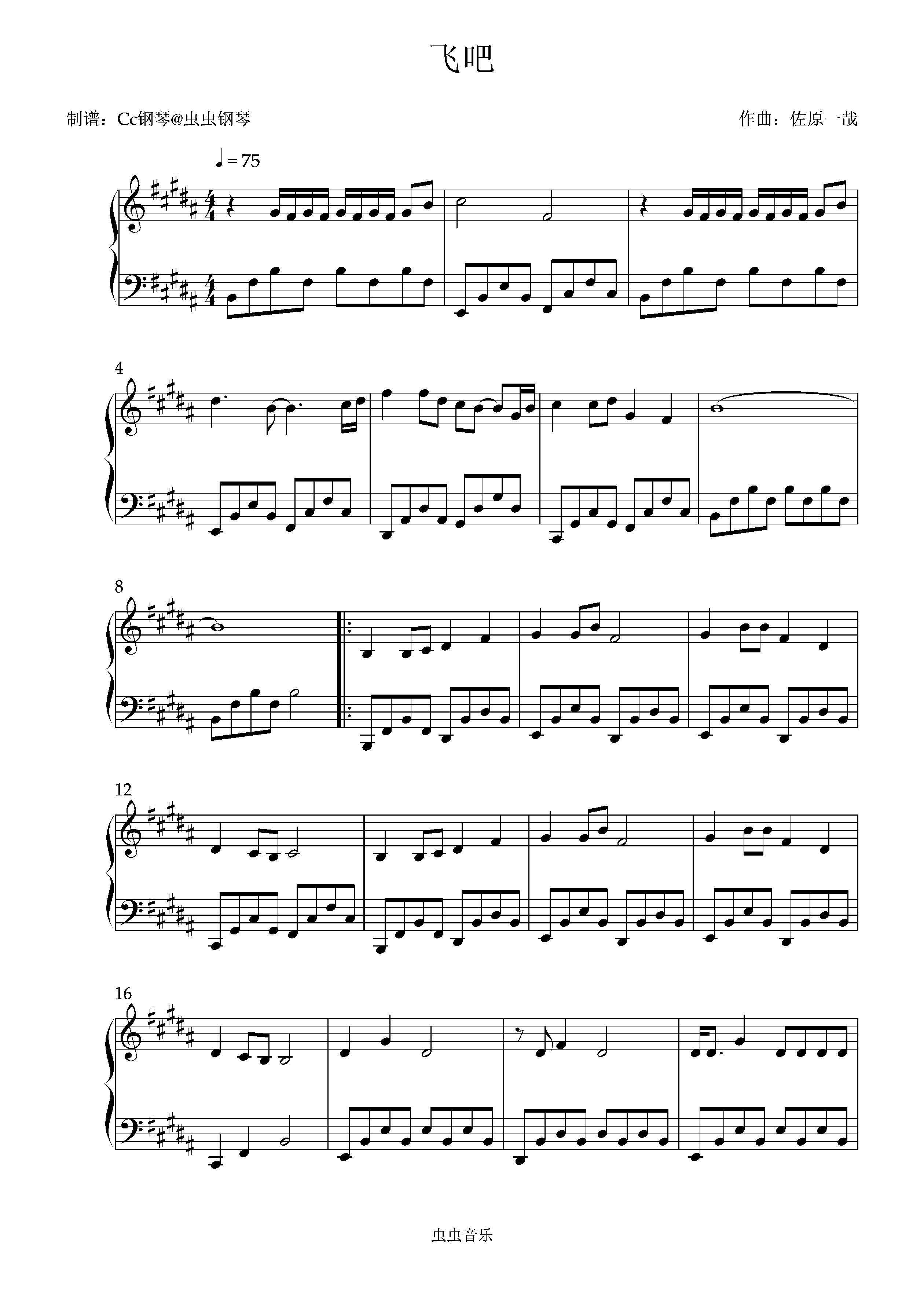• 飞吧!小夜曲钢琴简谱 Eb调 数字双手