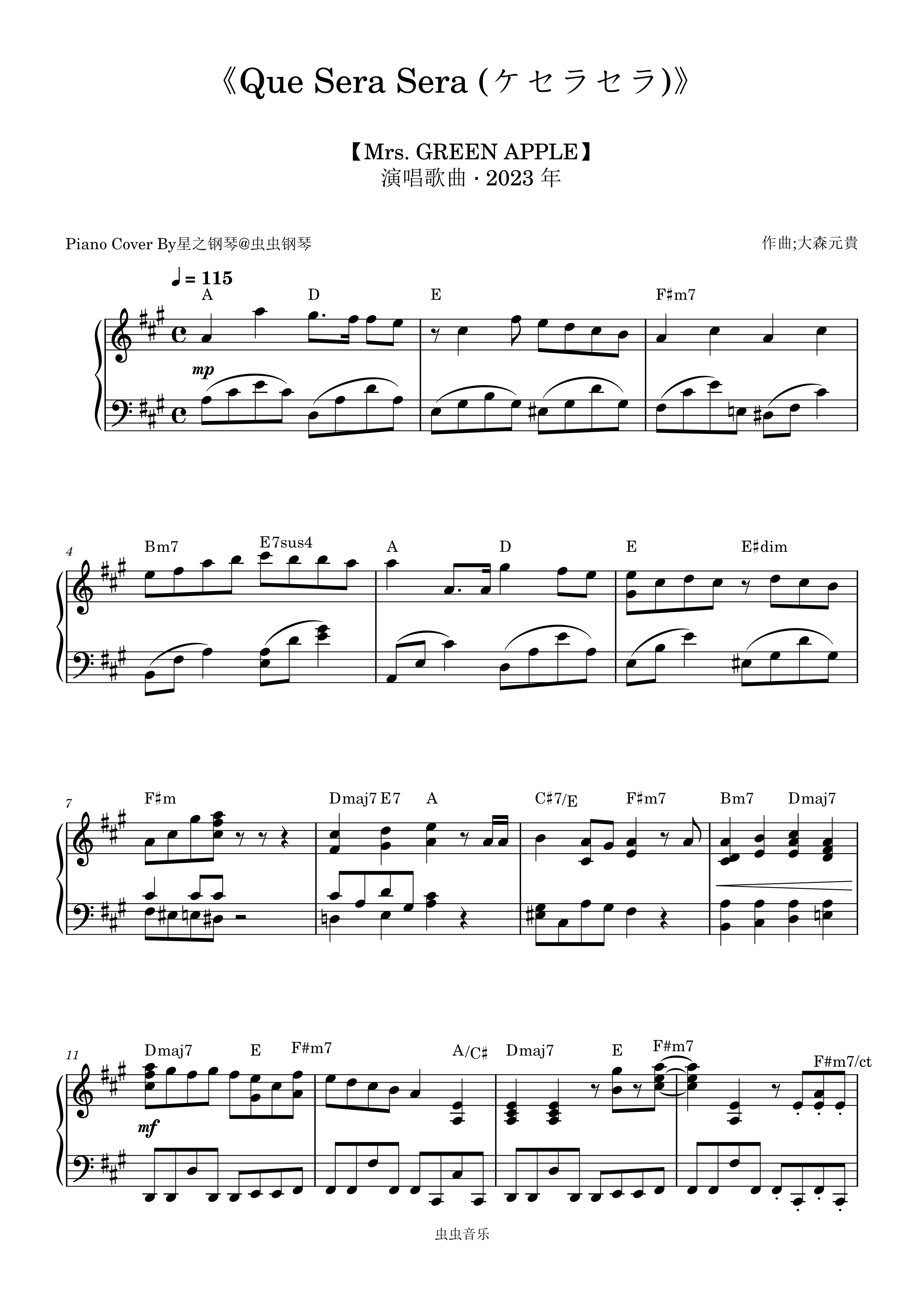 • ケセラセラ钢琴简谱 A调 数字双手 大森元貴
