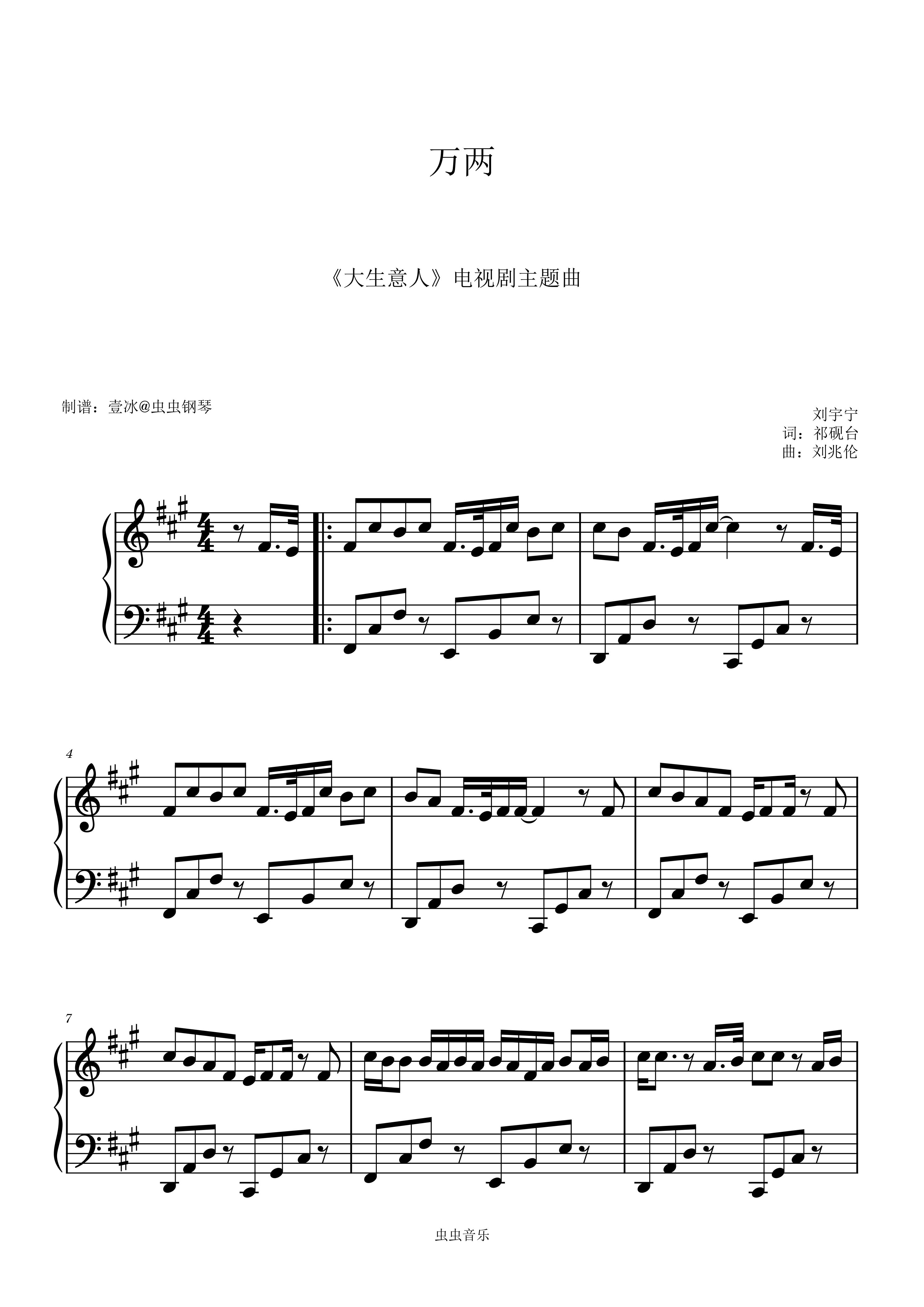 钢琴谱:万两 (《大生意人》电视剧主题曲) - 原调