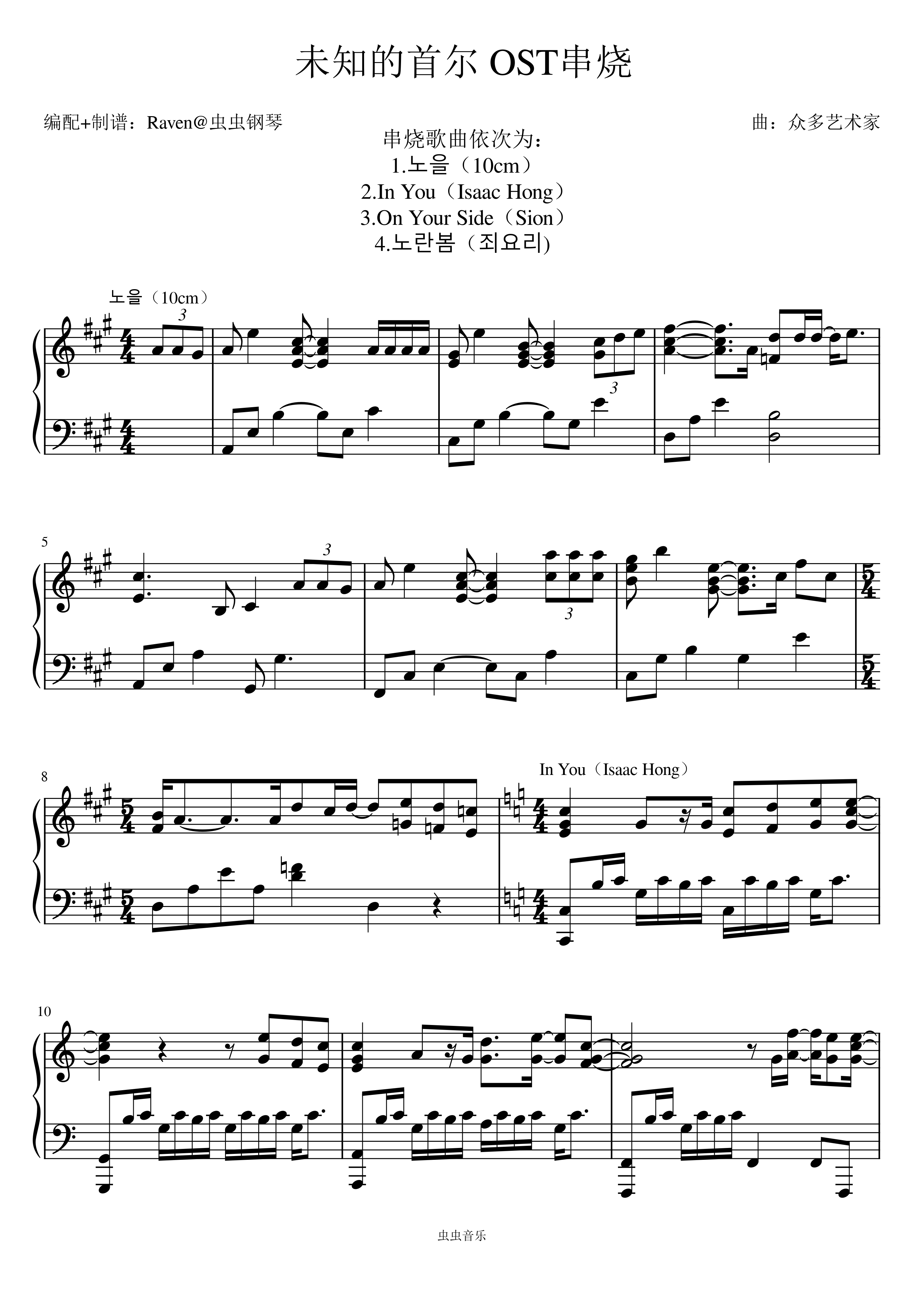 钢琴谱:未知的首尔 4首OST 经典钢琴串烧