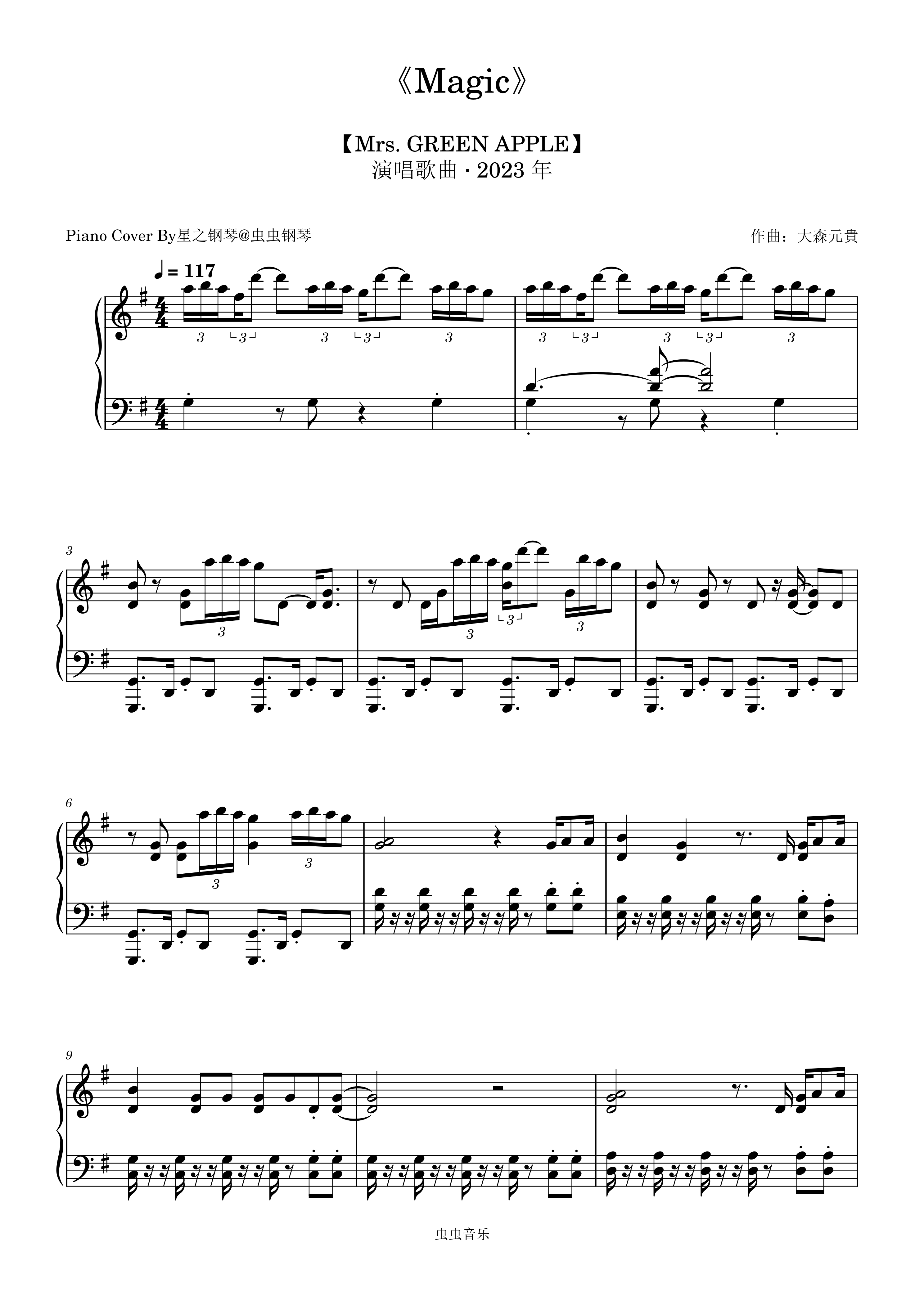 钢琴谱:【Mrs. GREEN APPLE】《Magic》钢琴还原独奏版~星之钢琴~
