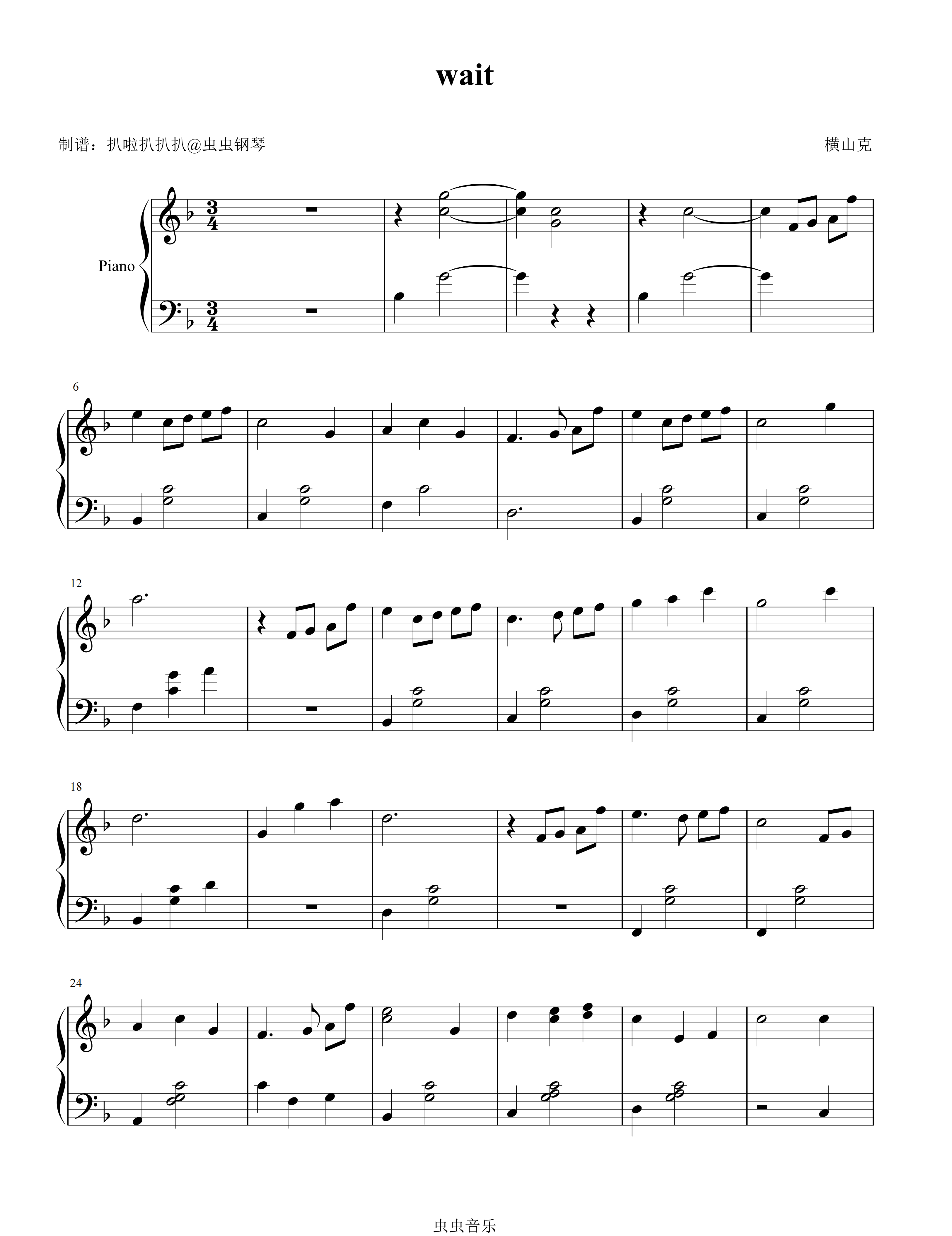 钢琴谱:《wait》-横山克-钢琴演奏谱