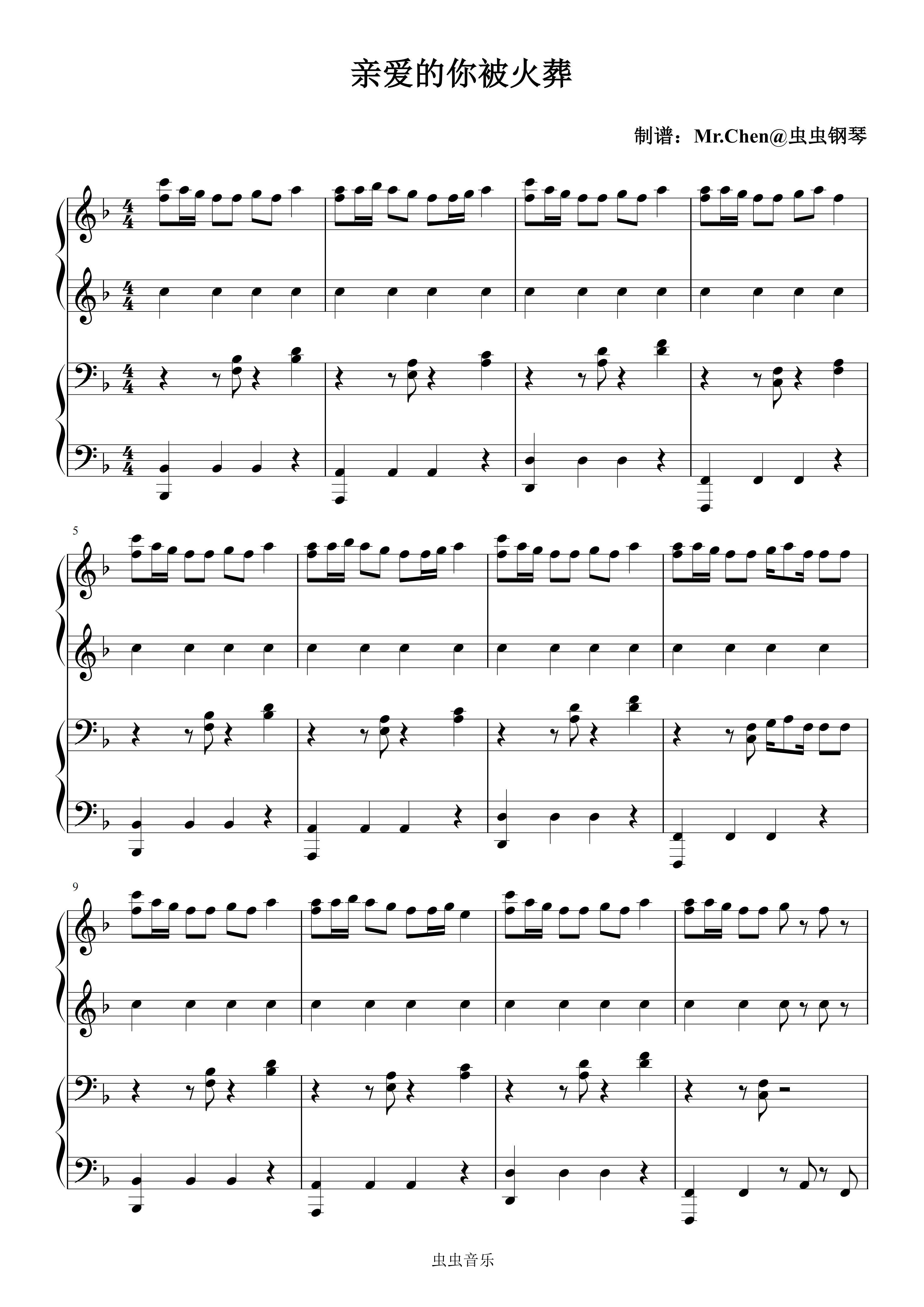 钢琴谱:亲爱的你被火葬 (四手联弹)- 虻瀬