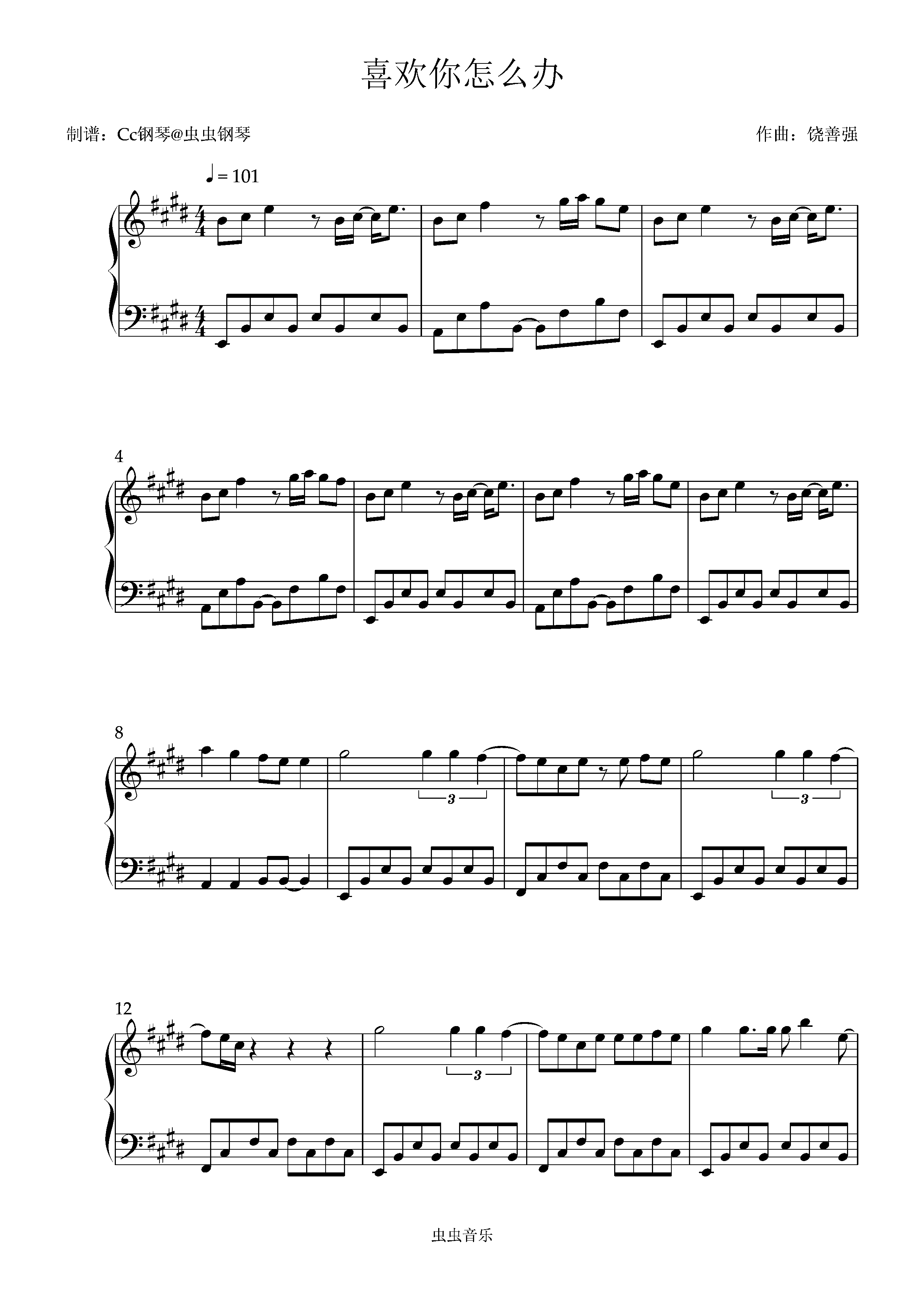 钢琴谱:喜欢你怎么办 原调 好听易上手
