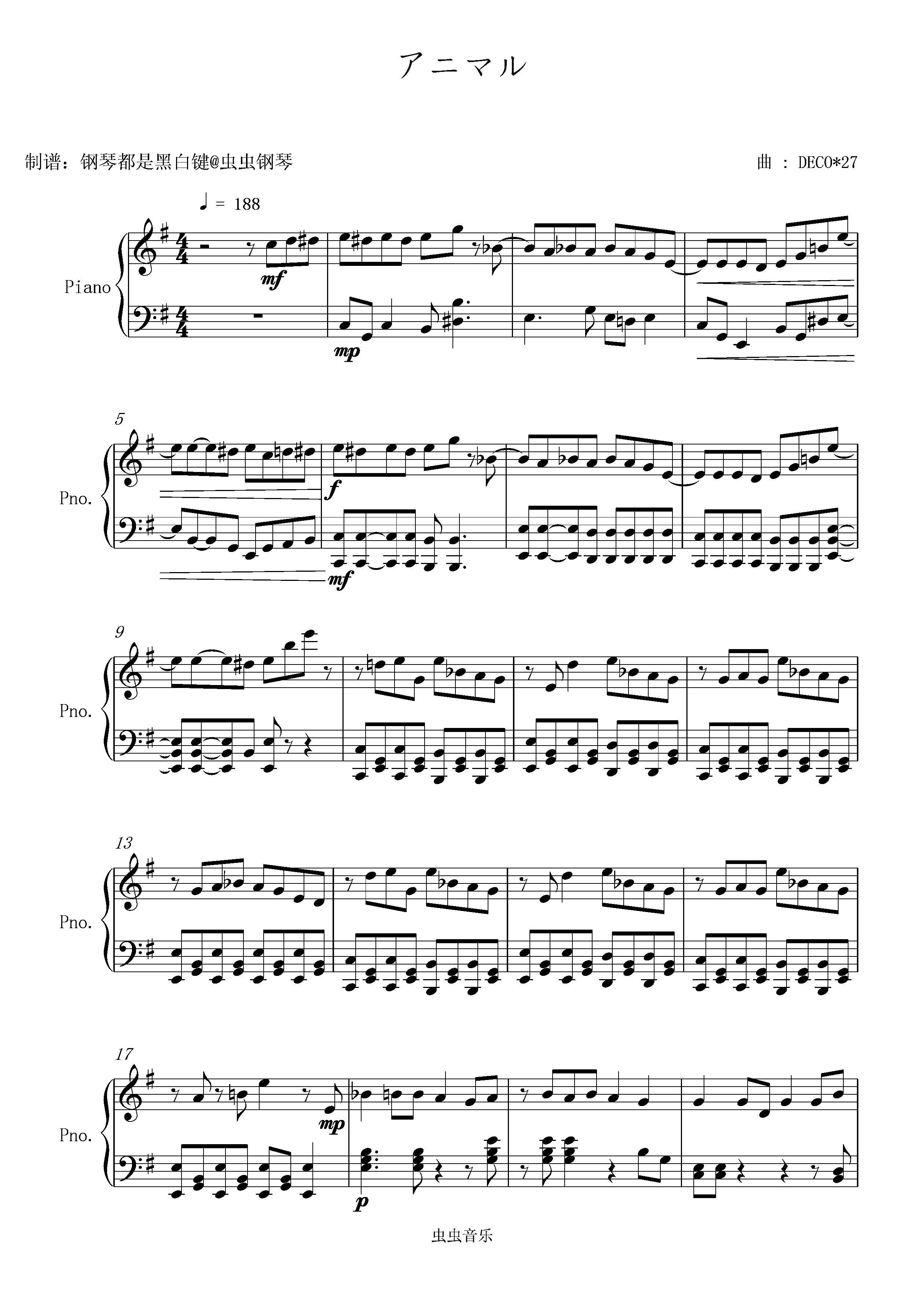 钢琴谱:【初音ミク/DECO*27】 野兽 / アニマル