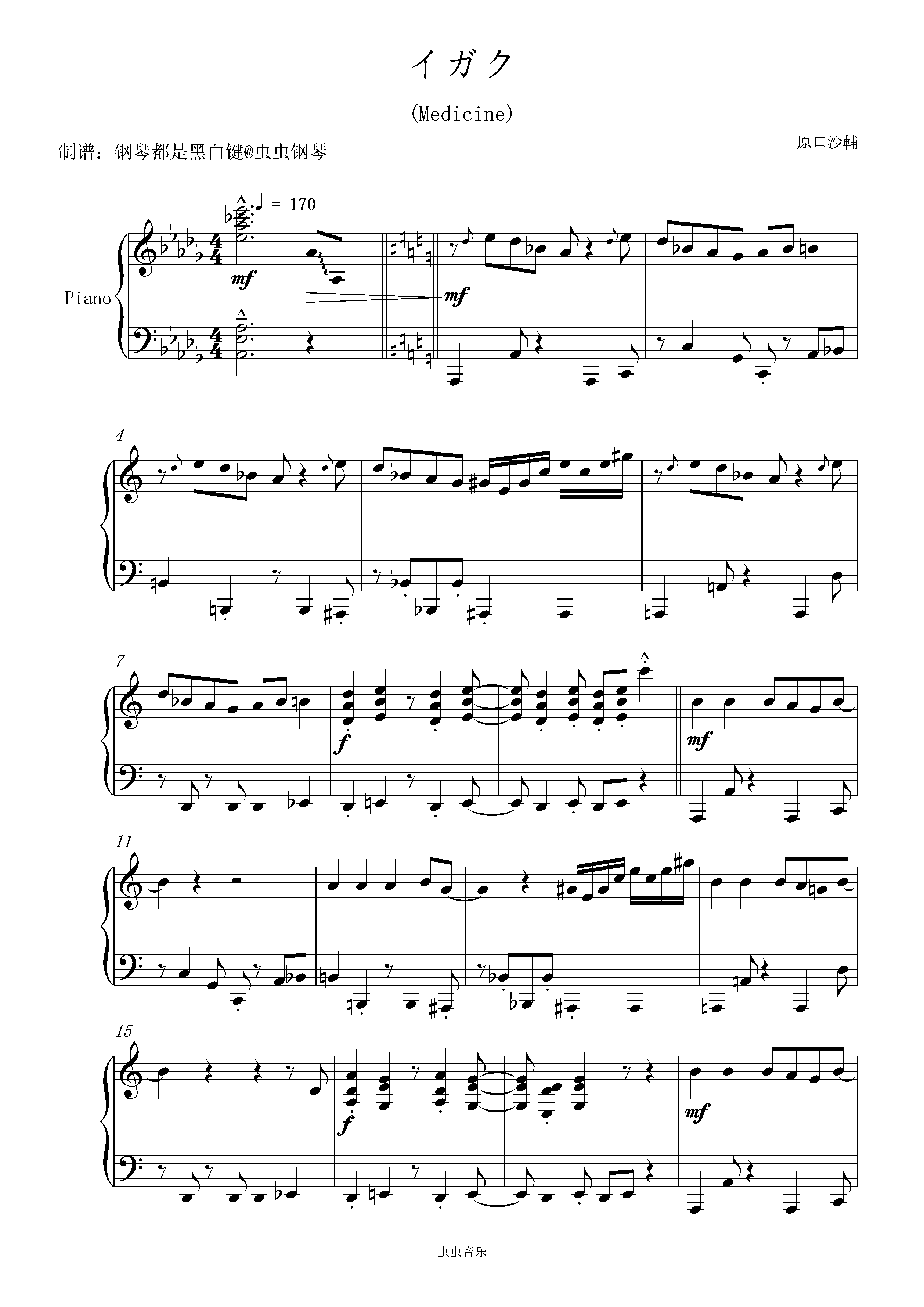 钢琴谱:【原口沙輔 / 重音テト】医学/イガク(C调演奏版)