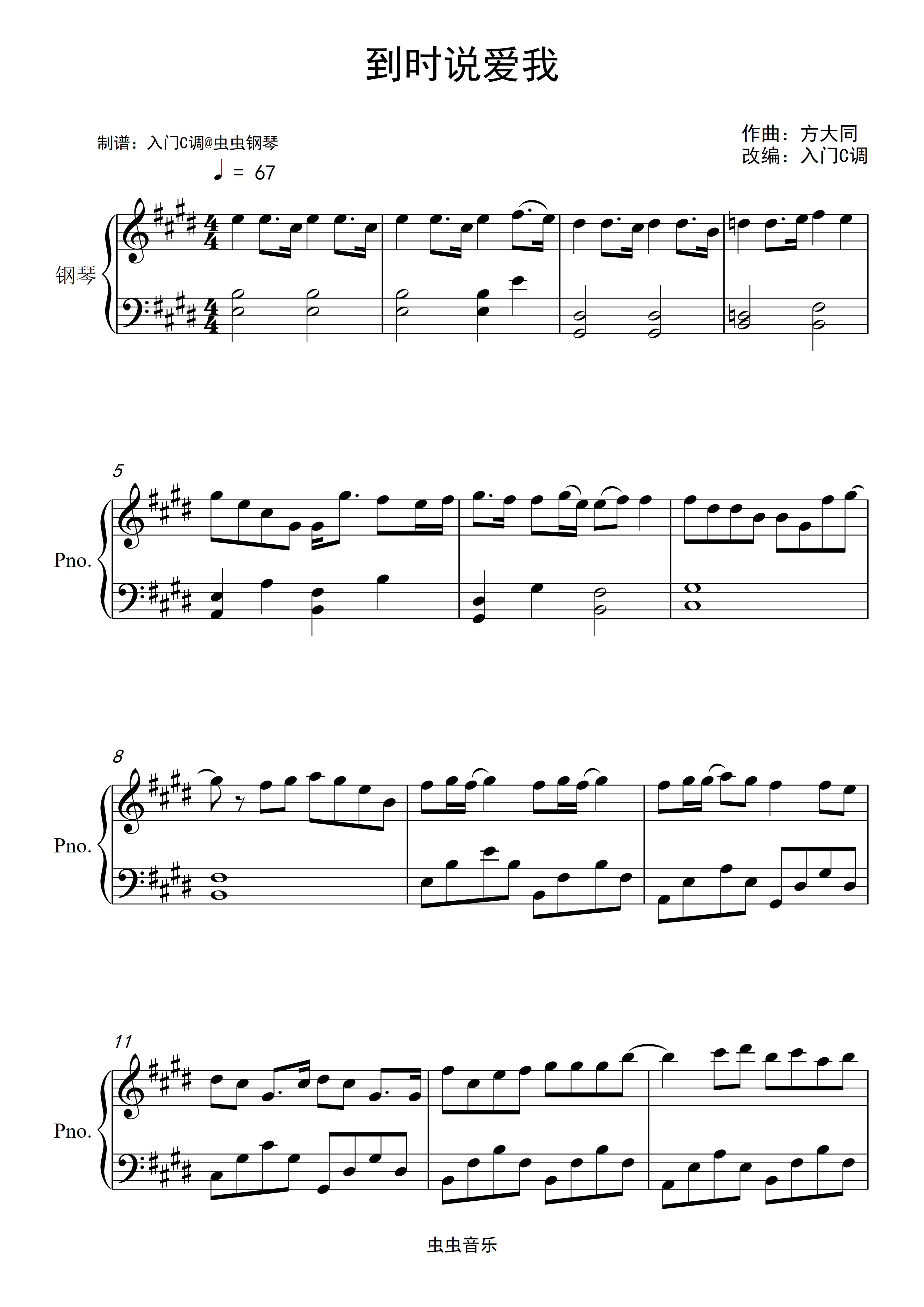 钢琴谱:到时说爱我—茜拉【原调简单入门版】