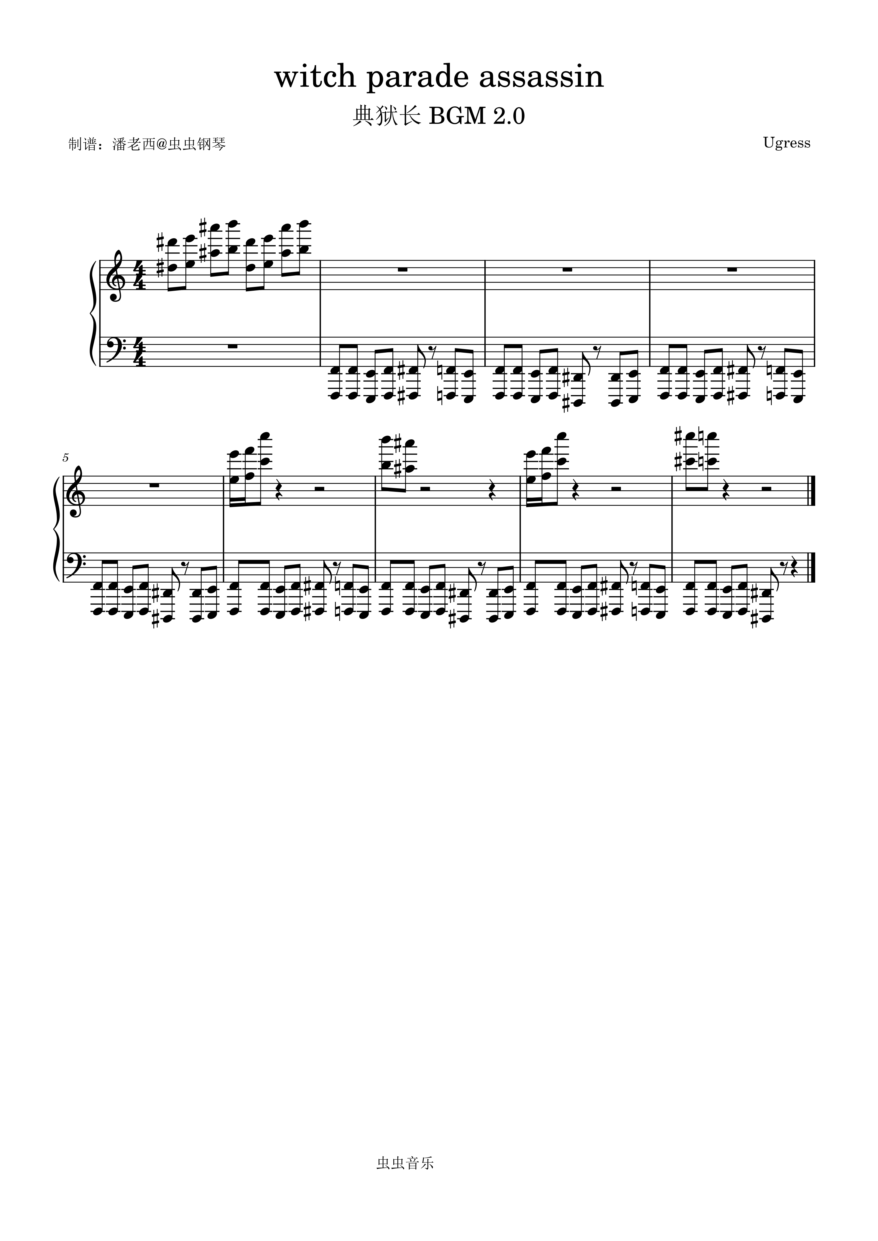 钢琴谱:女巫游行刺客2.0 ---(典狱长 BGM)witch parade assassin