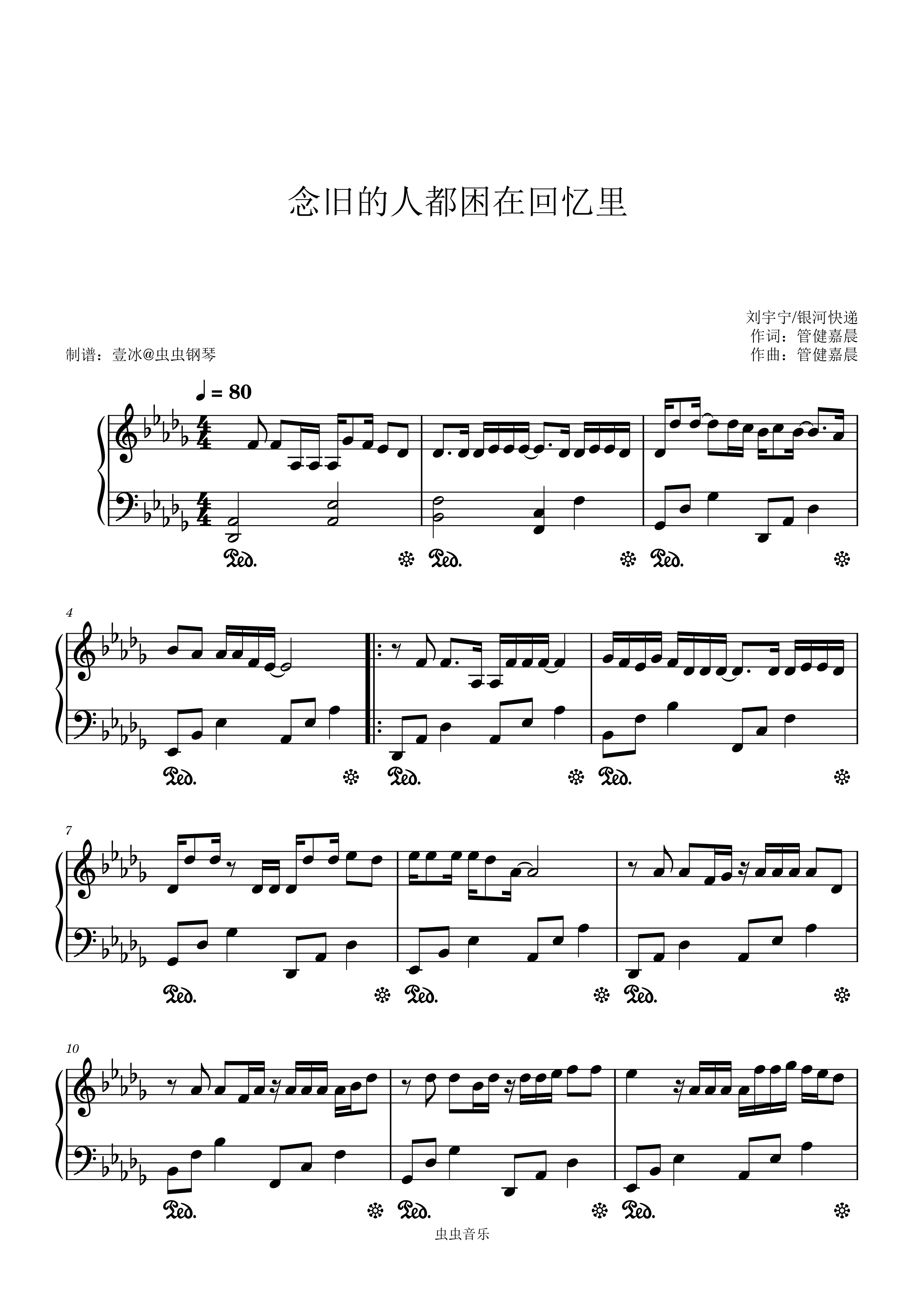念旧的人都困在回忆里钢琴简谱 数字双手 管健嘉晨