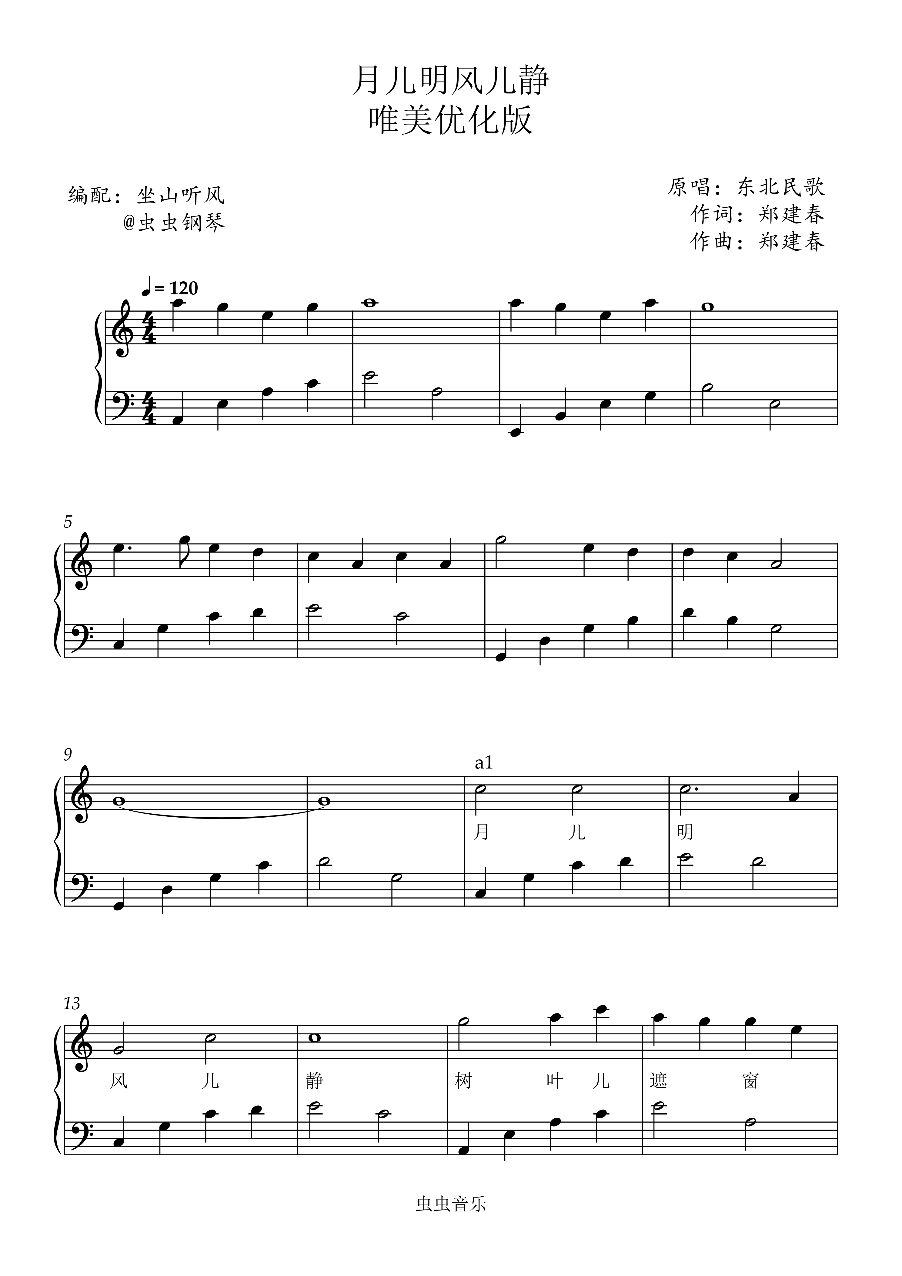 钢琴谱:月儿明风儿静 ——唯美优化版