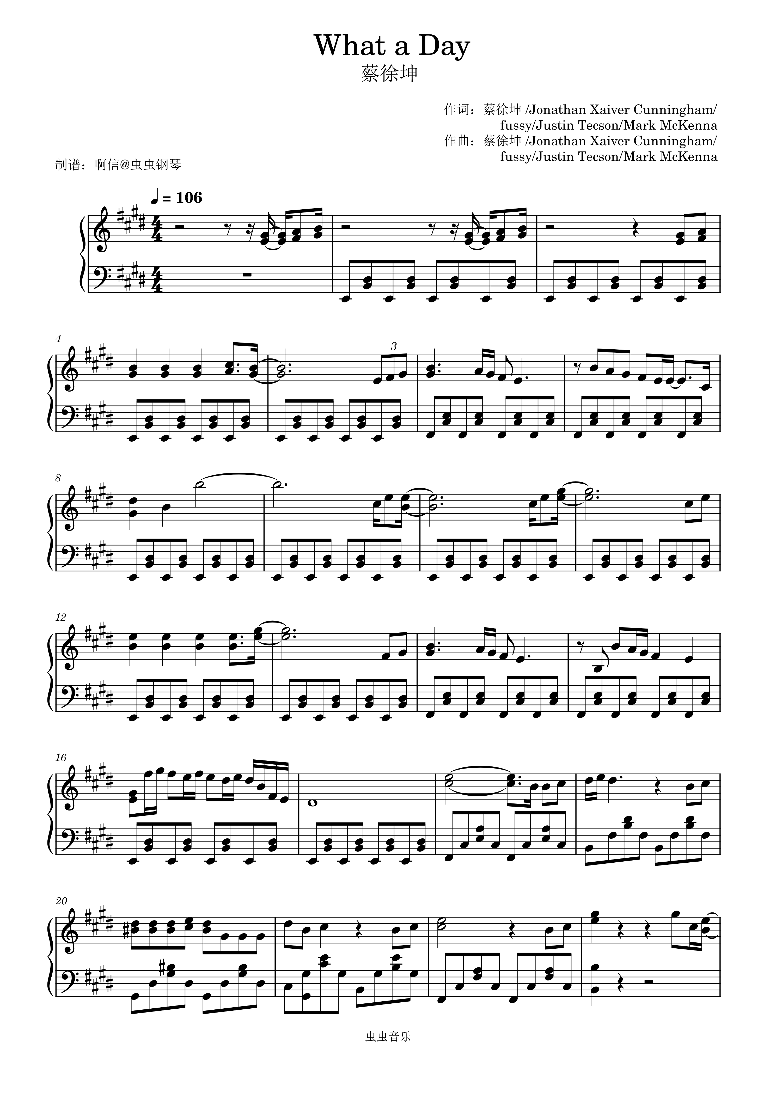 钢琴谱:What a Day-蔡徐坤-完美还原E调
