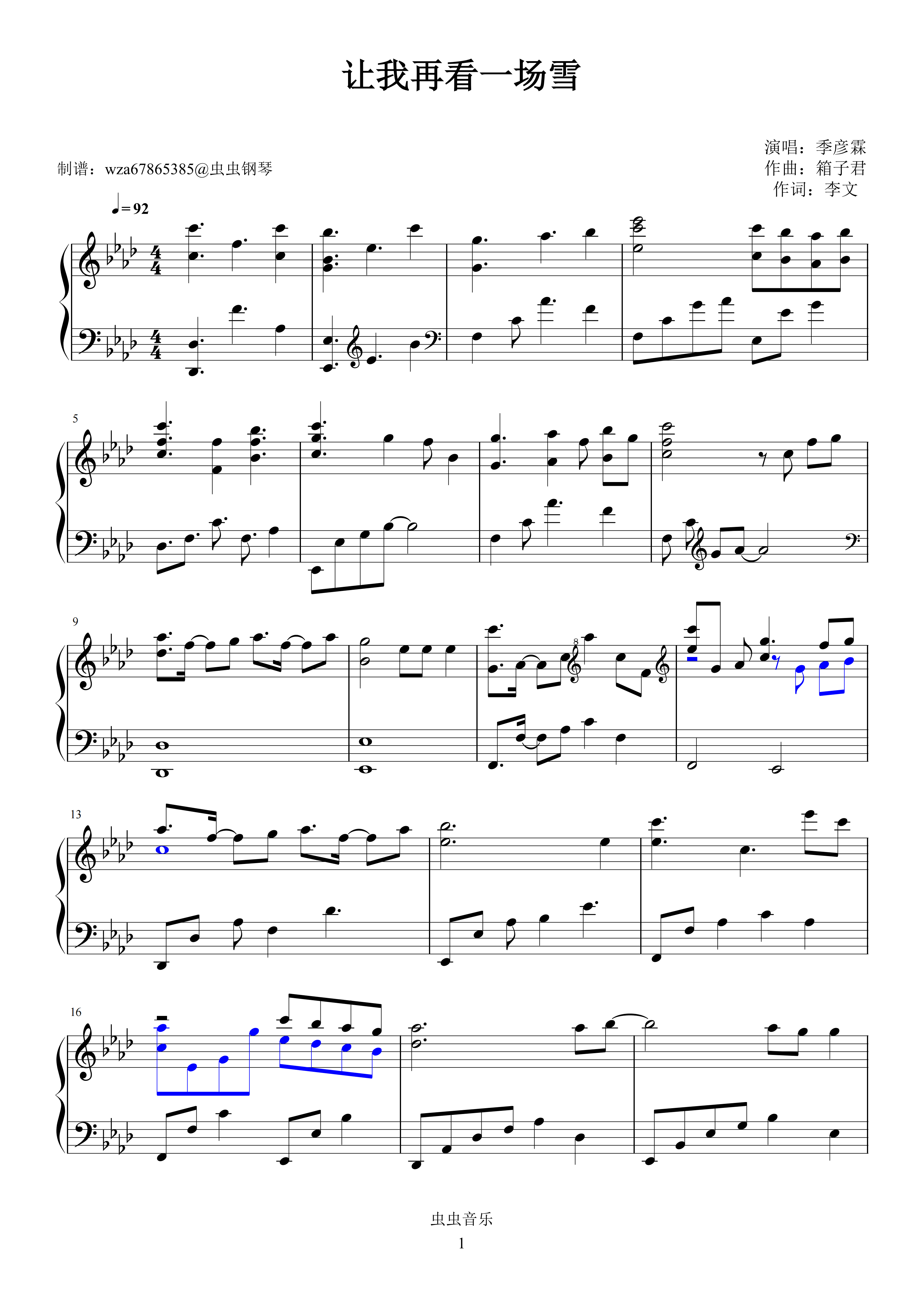 • 春雪钢琴简谱 e调 数字双手 Terry Zhong 钟天利、王子zione