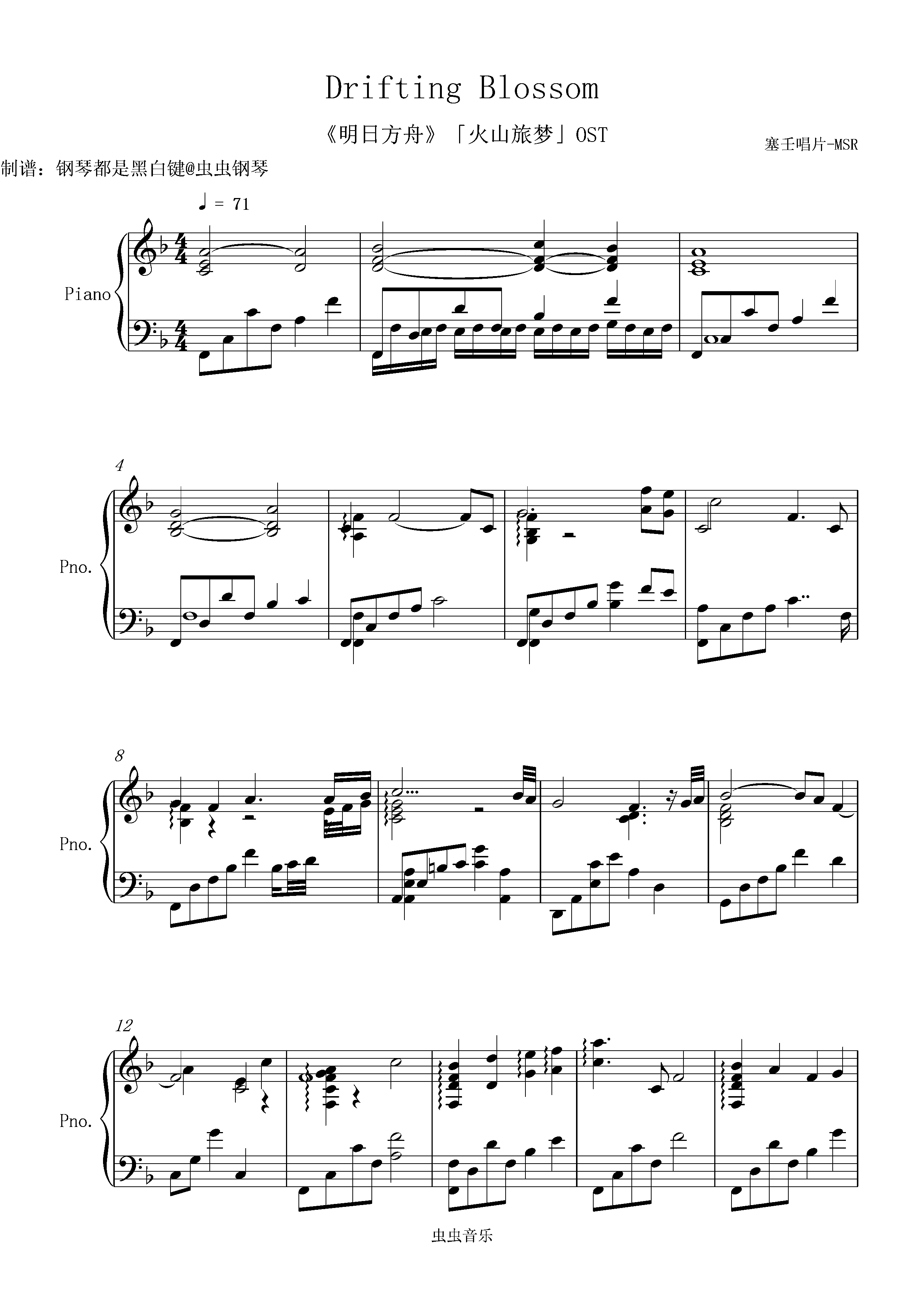 钢琴谱:《明日方舟》「火山旅梦」OST Drifting Blossom