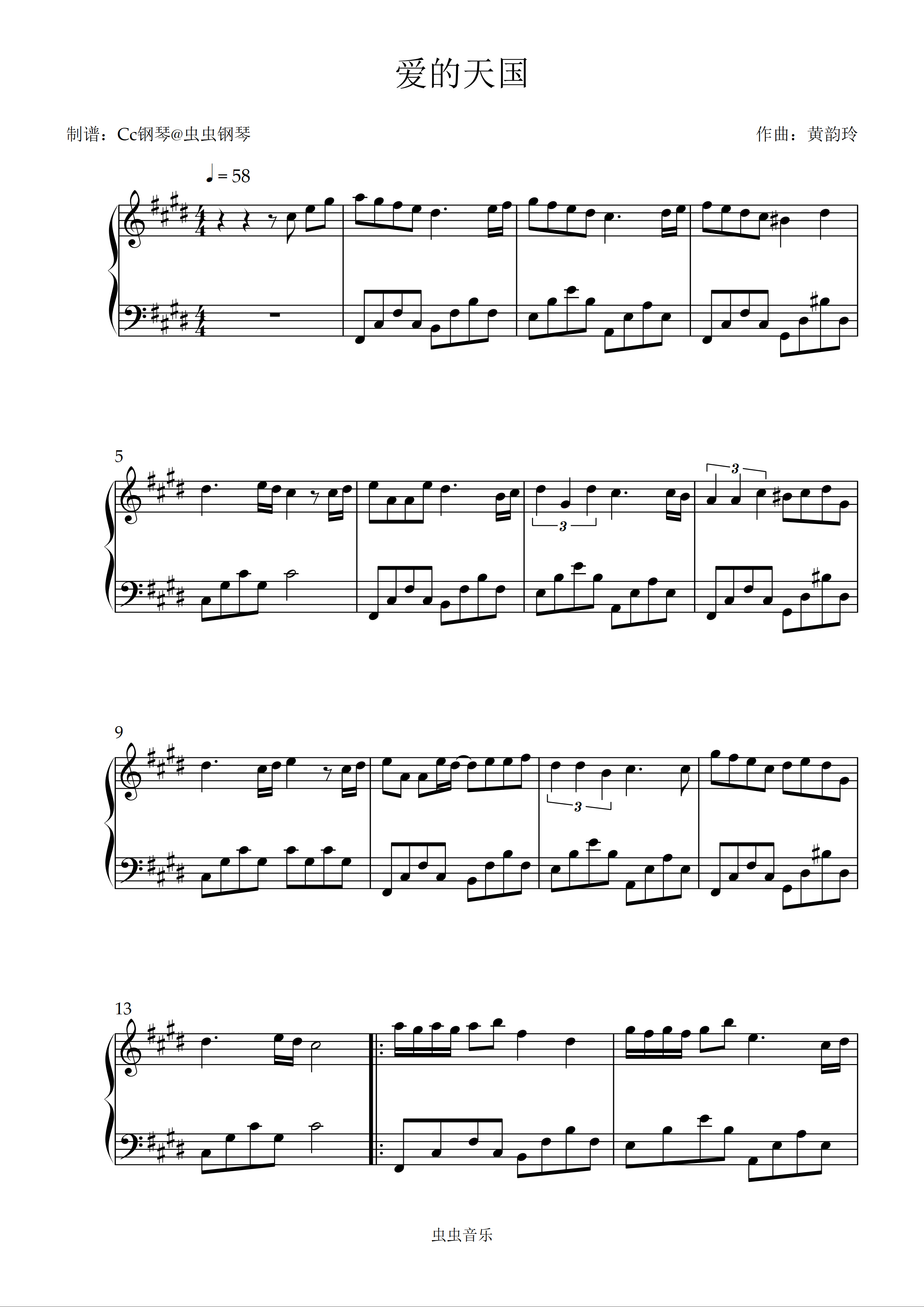 爱的天国 原调 好听易上手