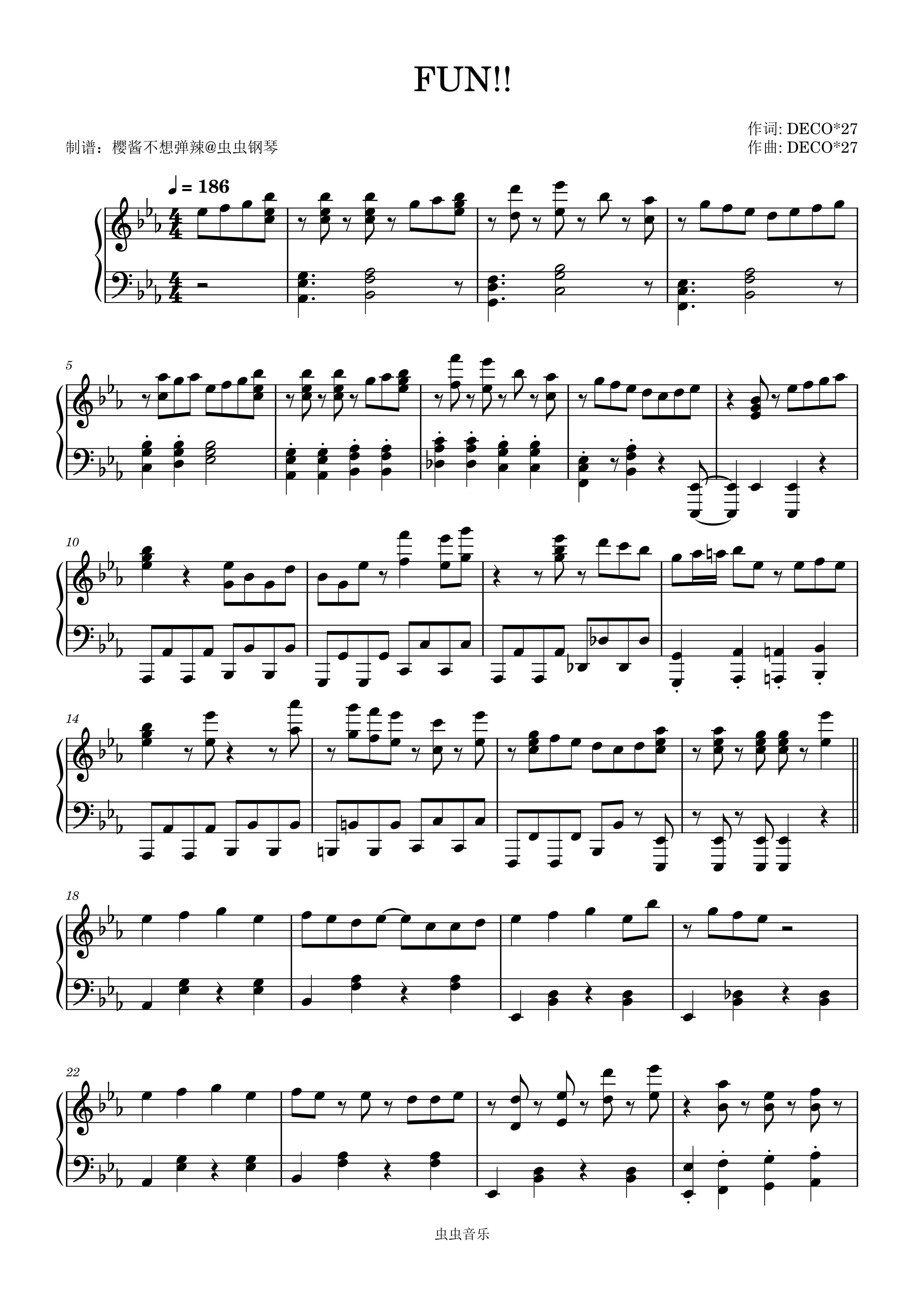 钢琴谱:FUN!! DECO*27/いよわ/初音ミク/鏡音リン/巡音ルカ/MEIKO
