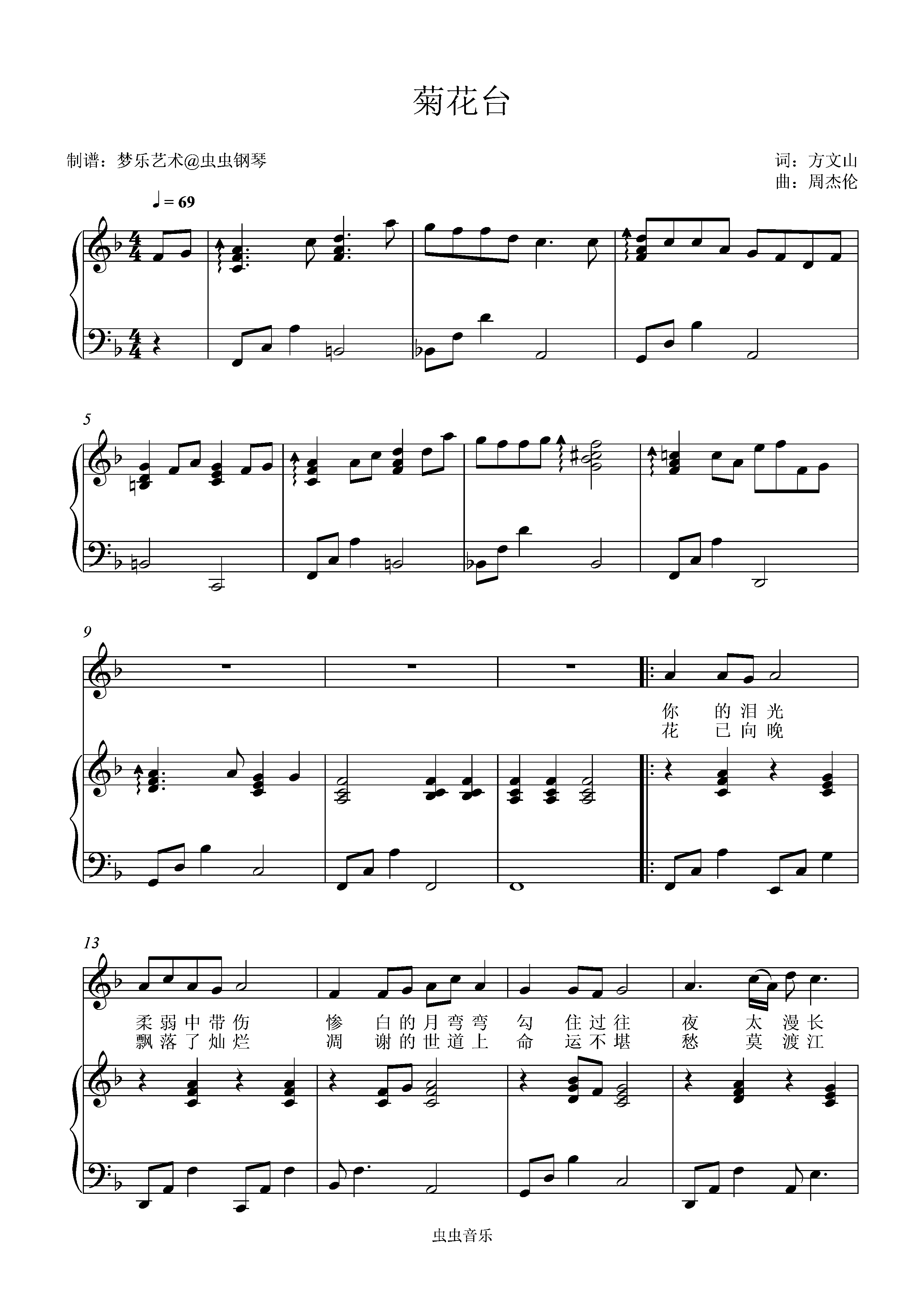 • 菊花台钢琴简谱 F调 数字双手 方文山