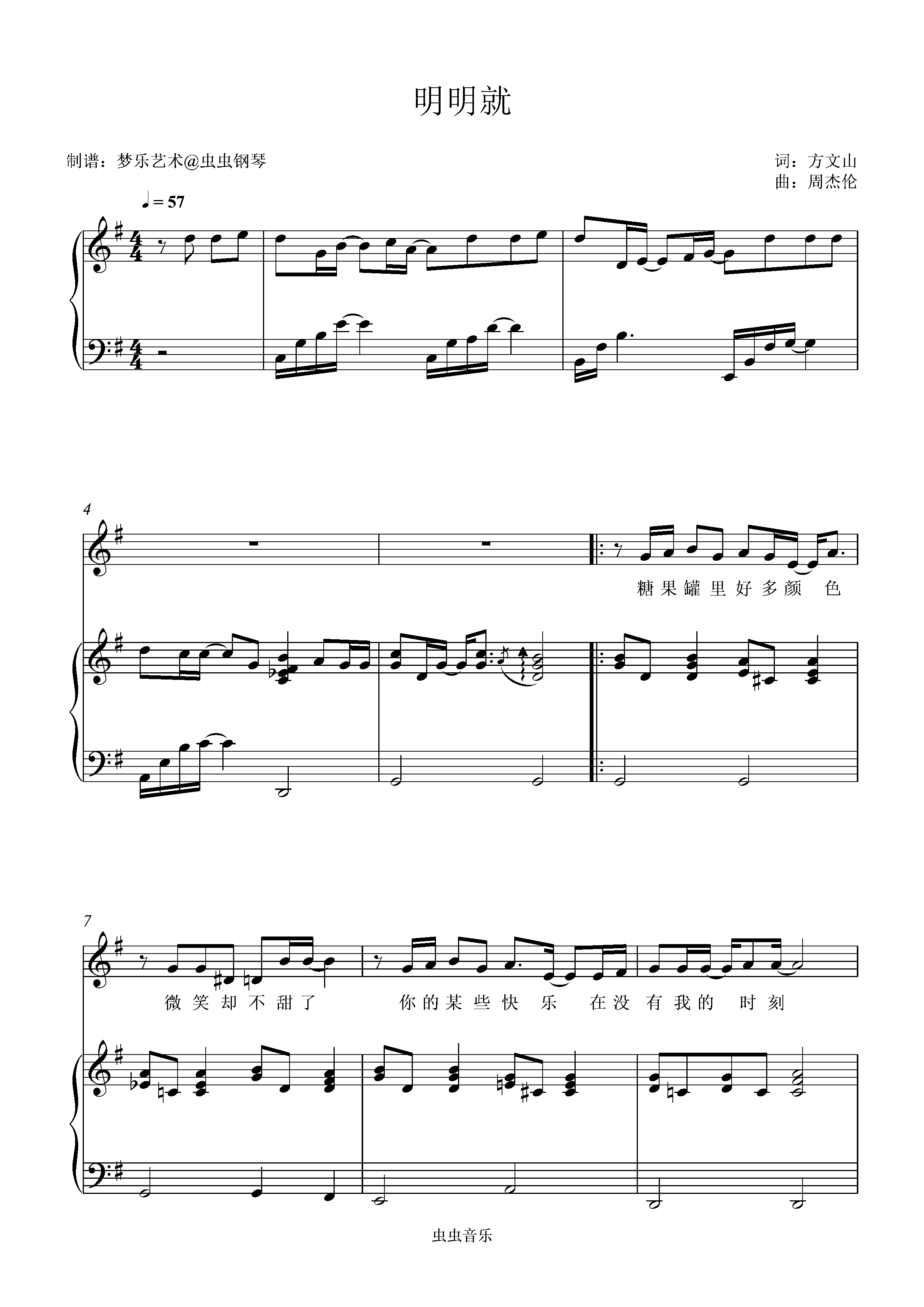 钢琴谱:《明明就》周杰伦 和弦弹唱版