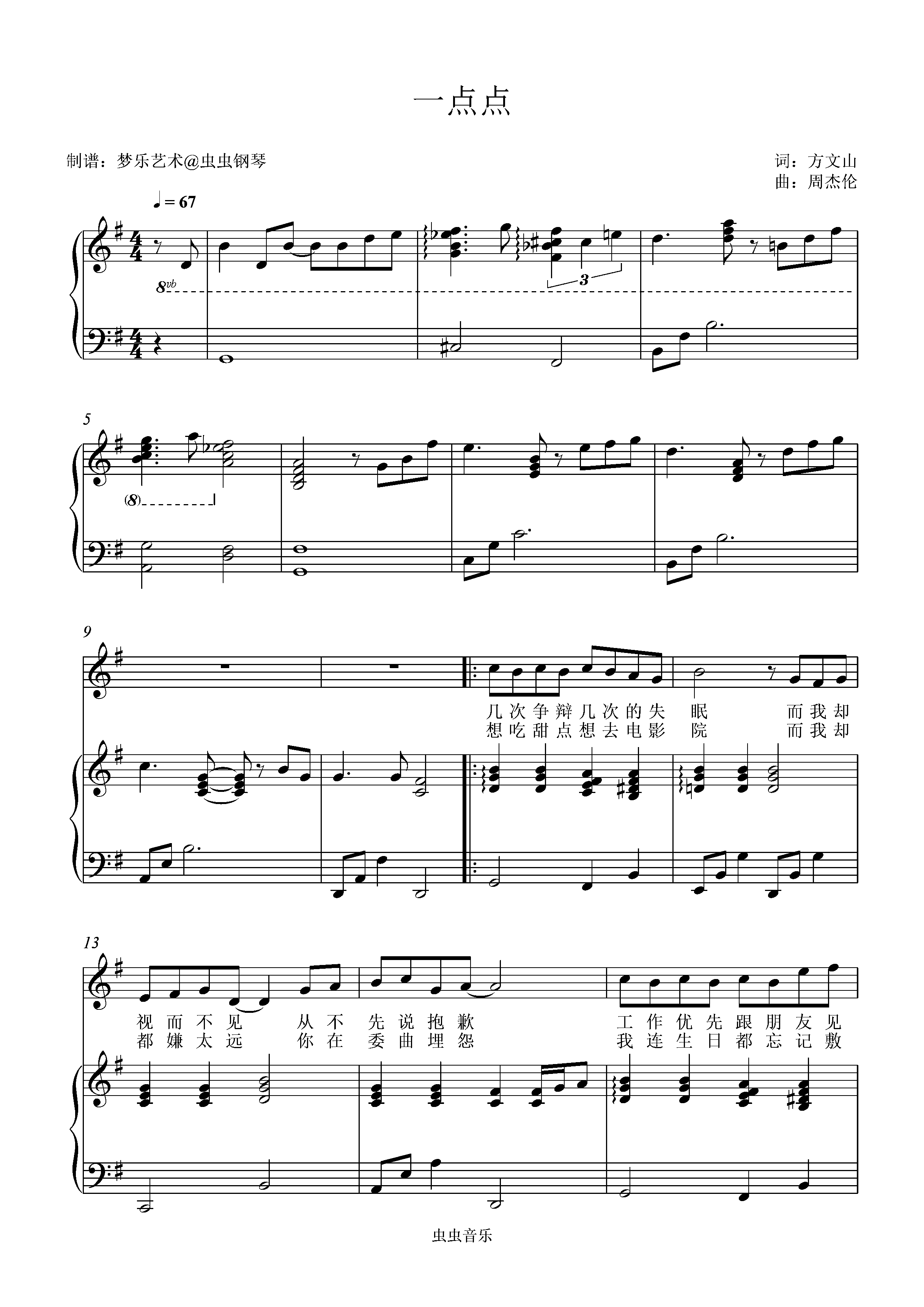 钢琴谱:《一点点》周杰伦 和弦弹唱版