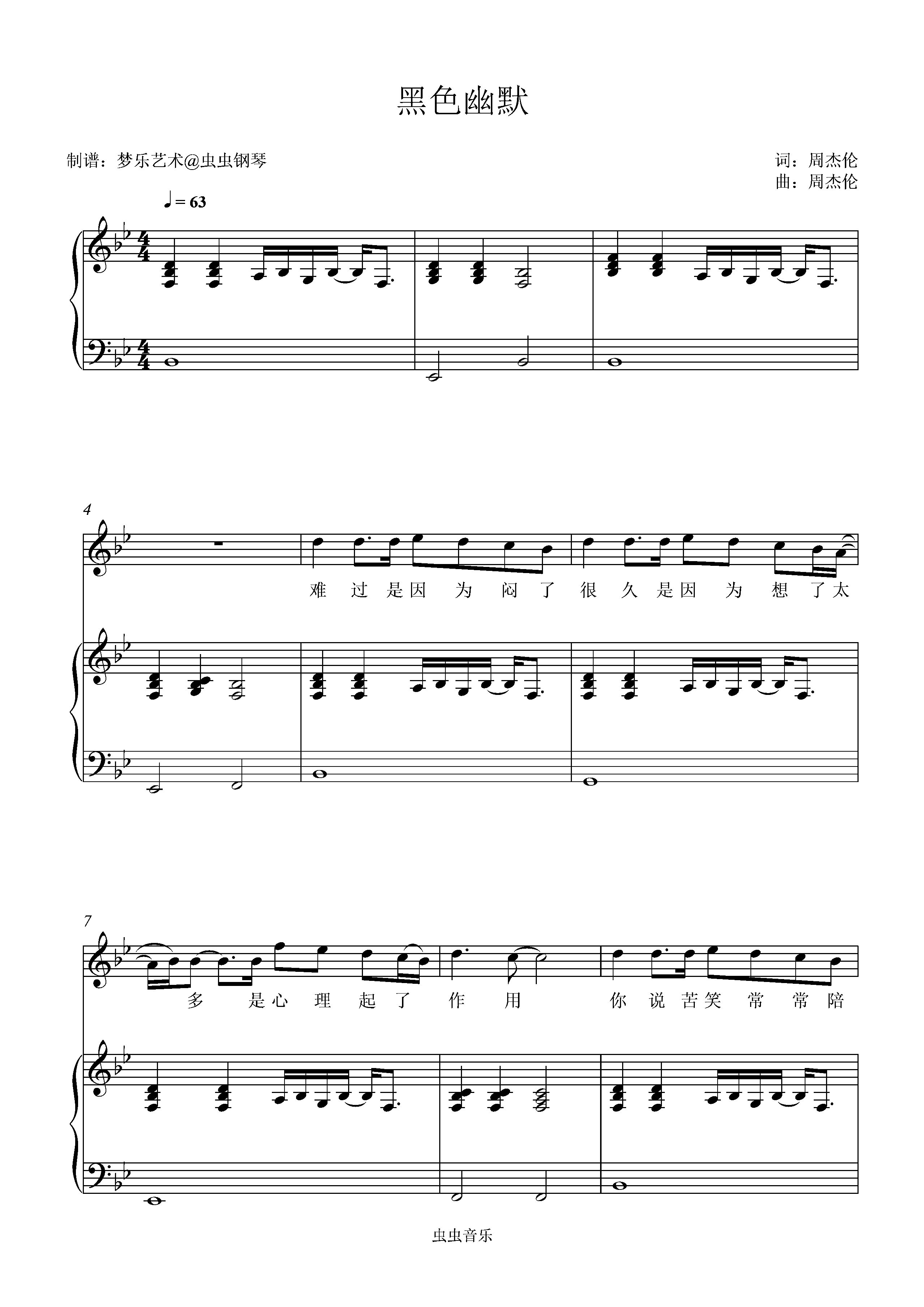 • 黑色幽默钢琴简谱 Bb调 数字双手