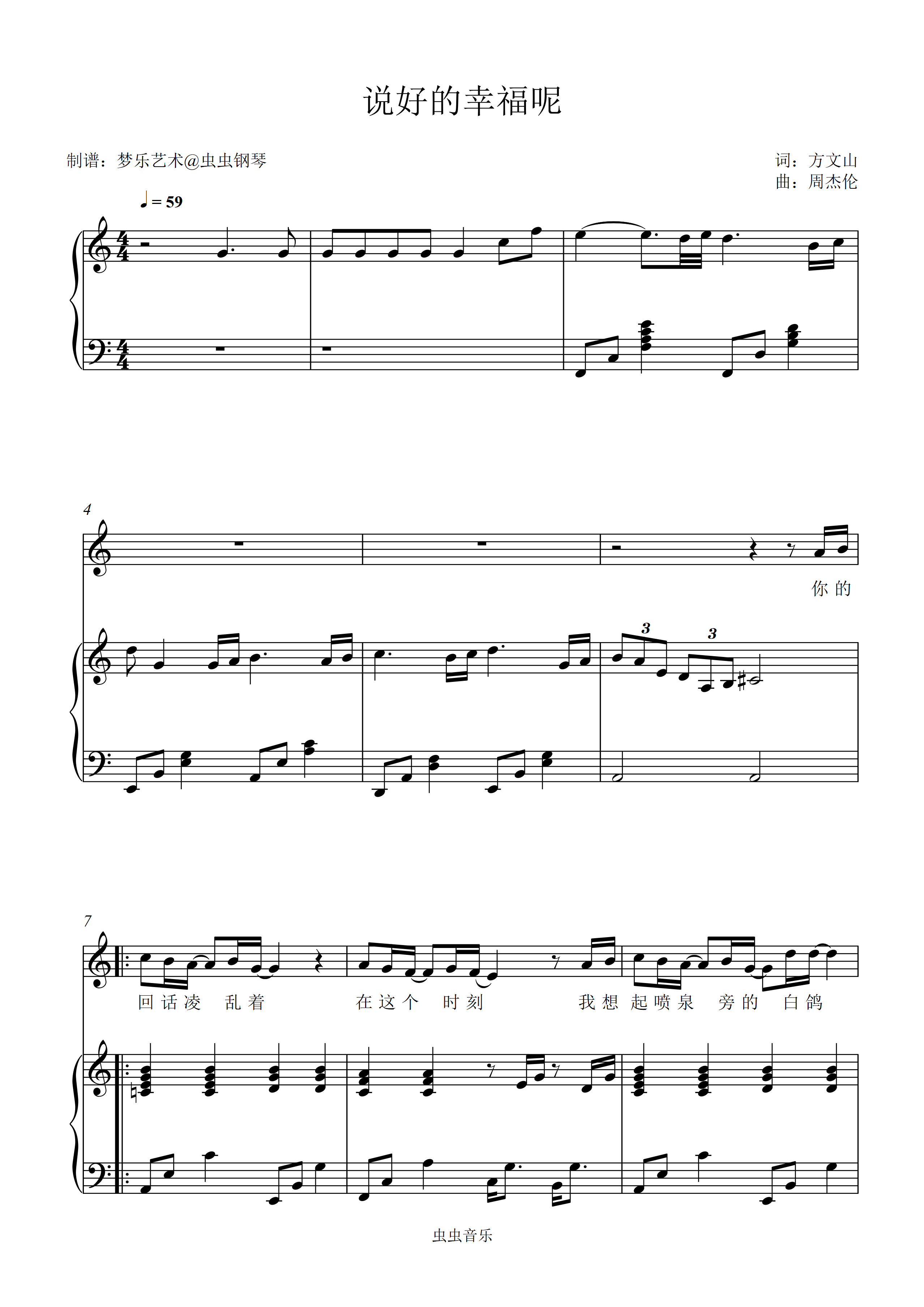 • 说好的幸福呢钢琴简谱 C调 数字双手 方文山