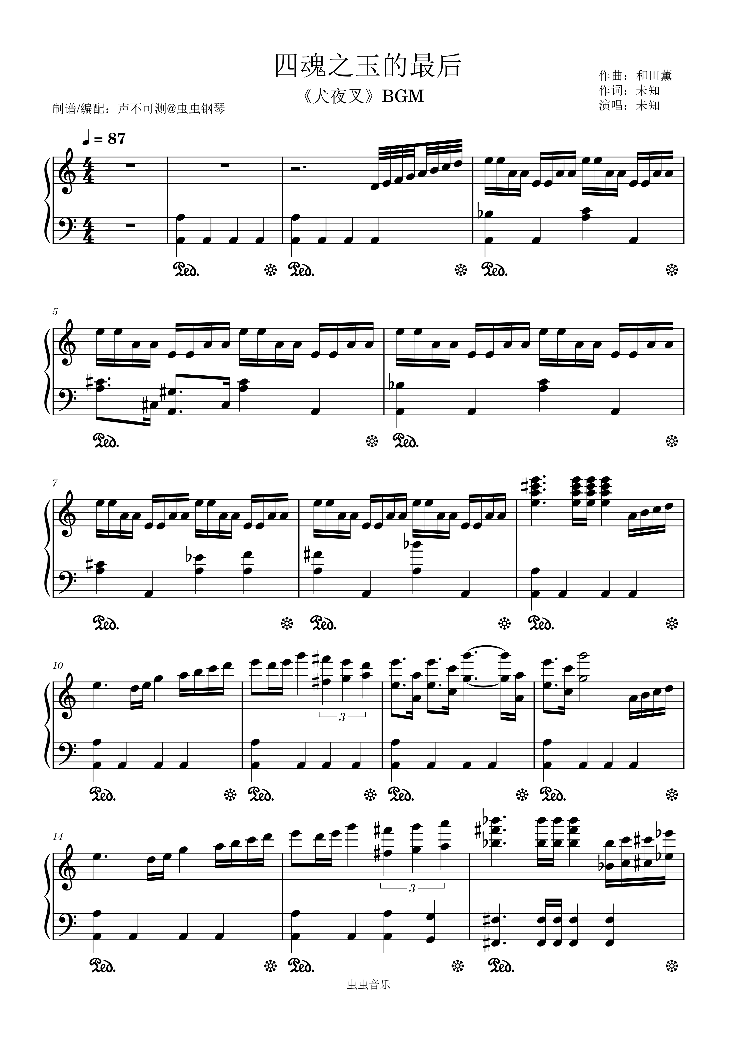 钢琴谱:四魂之玉的最后《犬夜叉》BGM - 声不可测