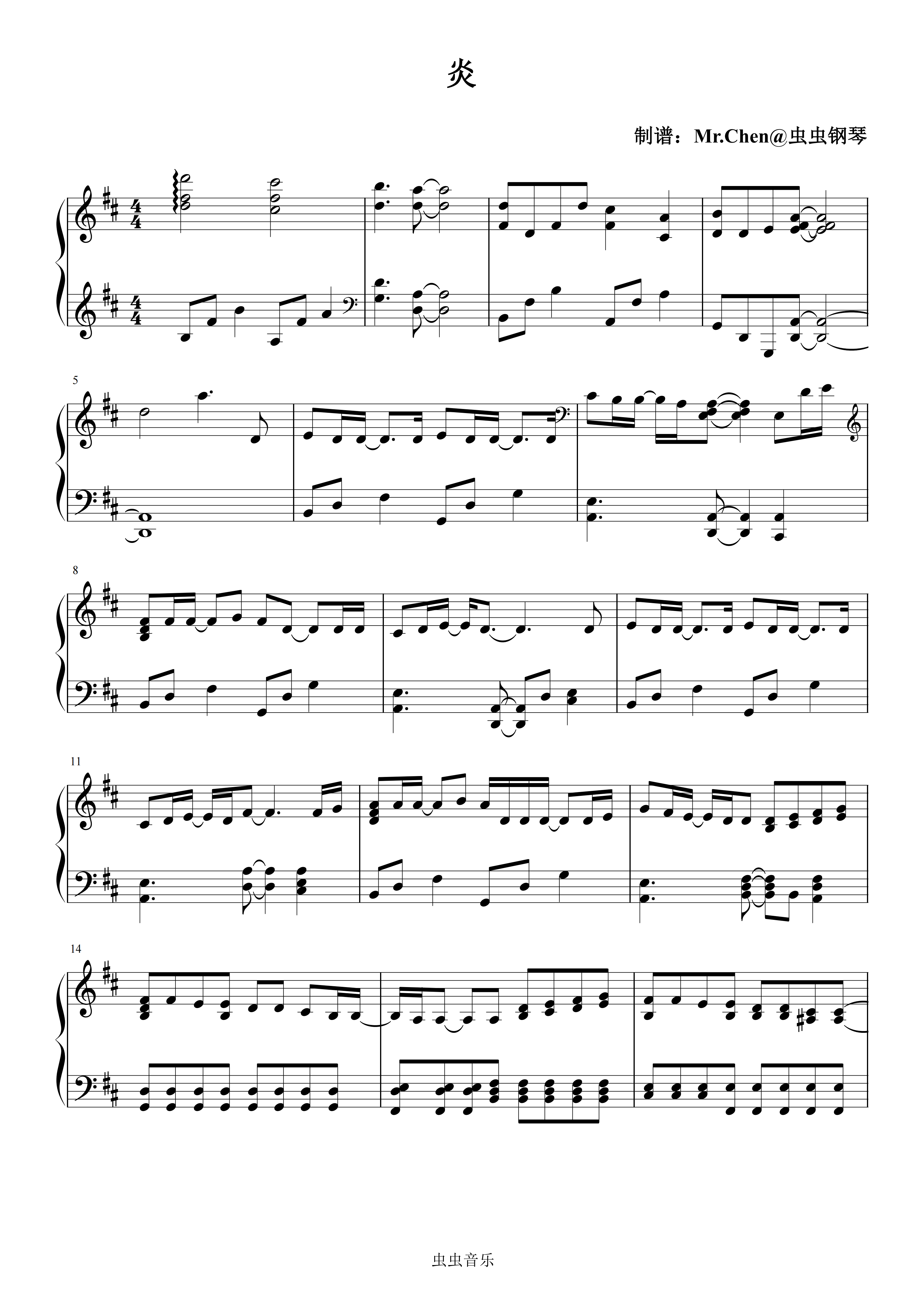 • 炎钢琴简谱 D调 数字双手 梶浦由記/LiSA