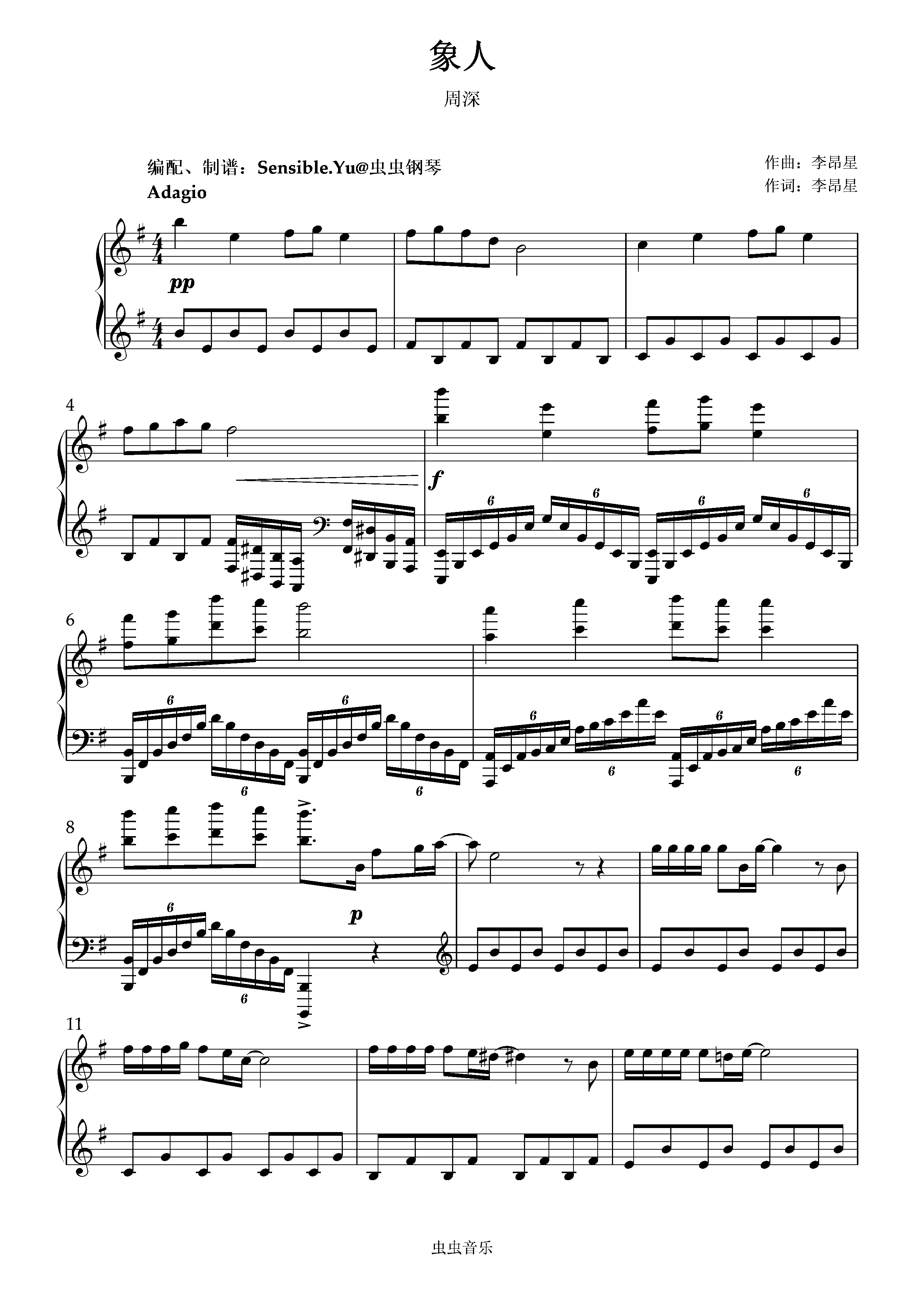 钢琴谱:《象人》——周深(编配:Sensible.Yu)