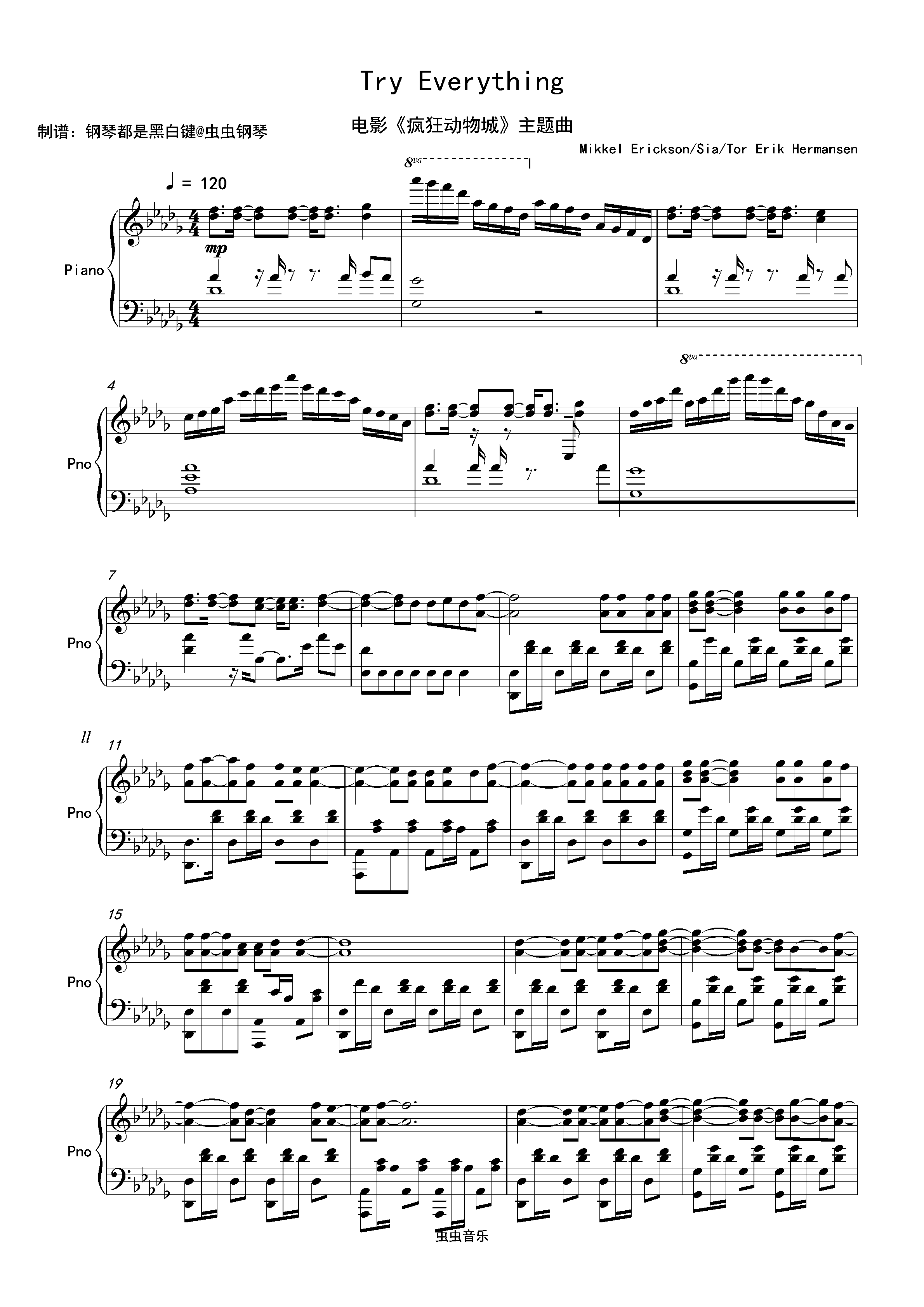 钢琴谱:疯狂动物城《Try Everything》炫技钢琴版