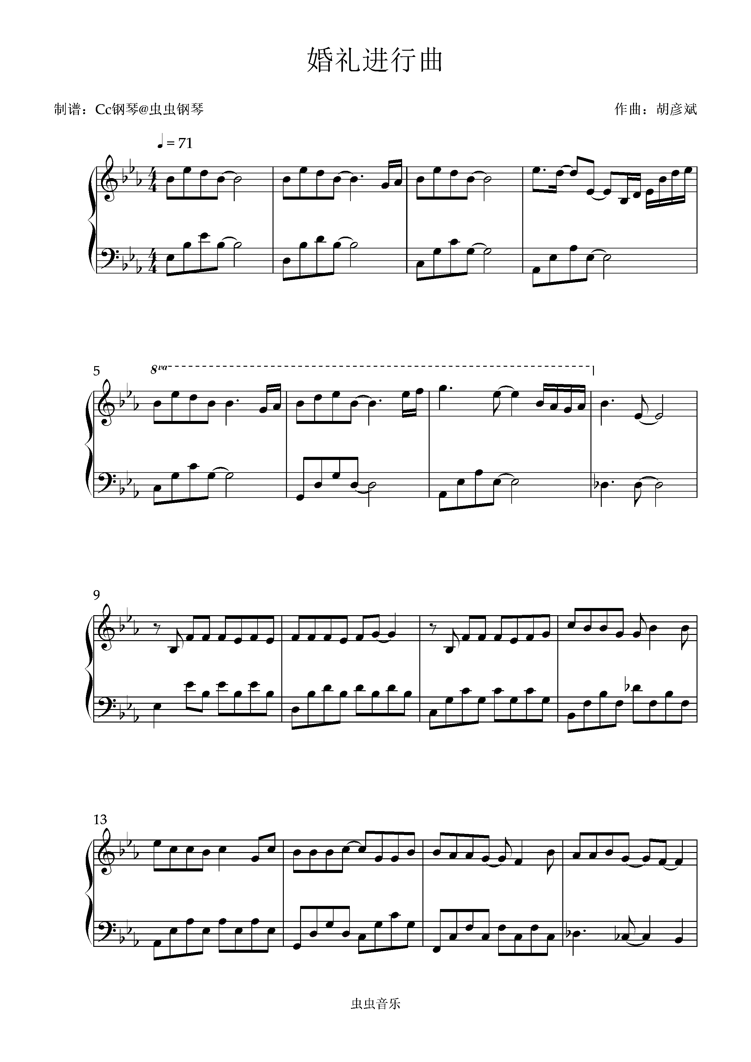 • 婚礼进行曲钢琴简谱 Bb调 数字双手