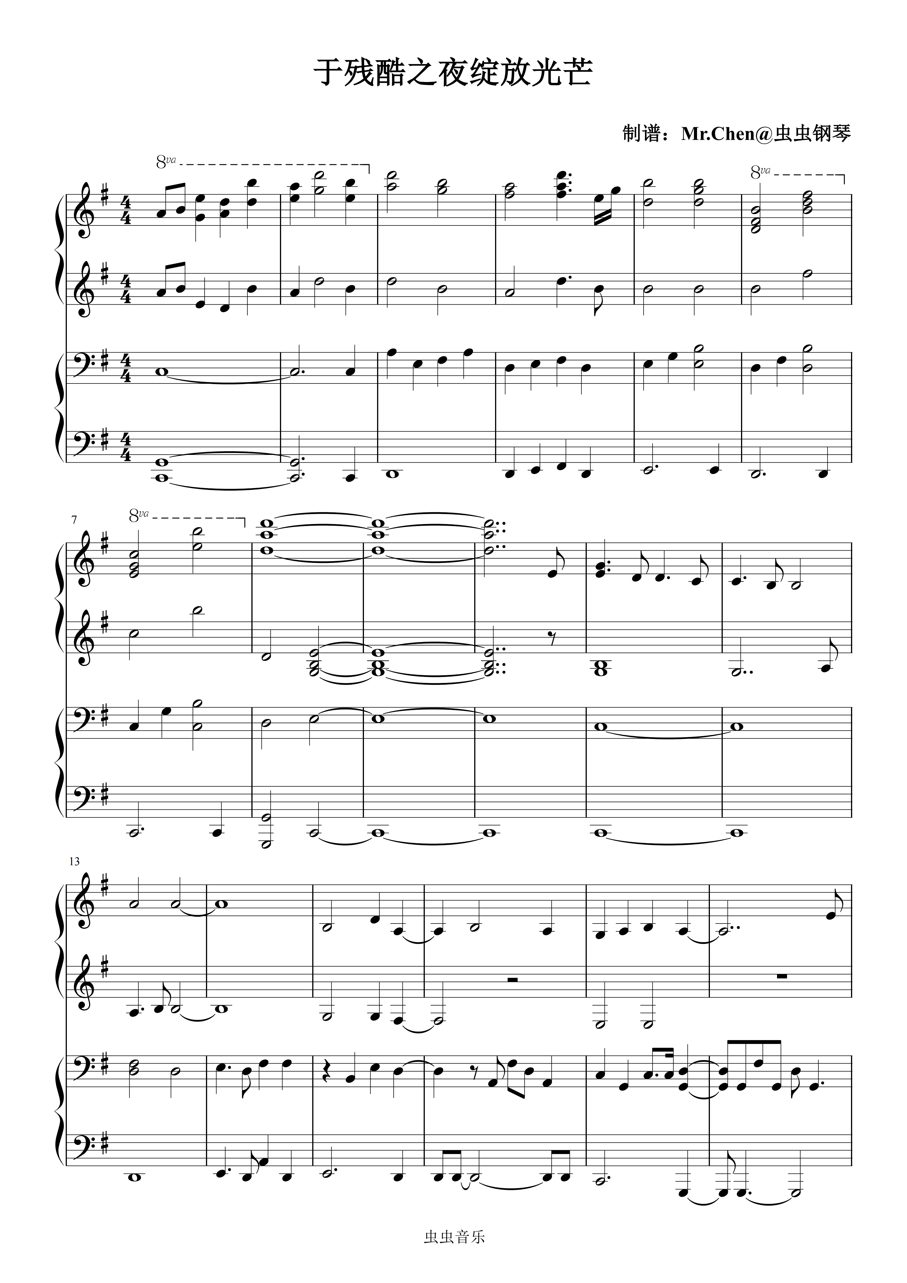 于残酷之夜绽放光芒 (四手联弹)G调 -动画电影《鬼灭之刃:无限城》主题曲