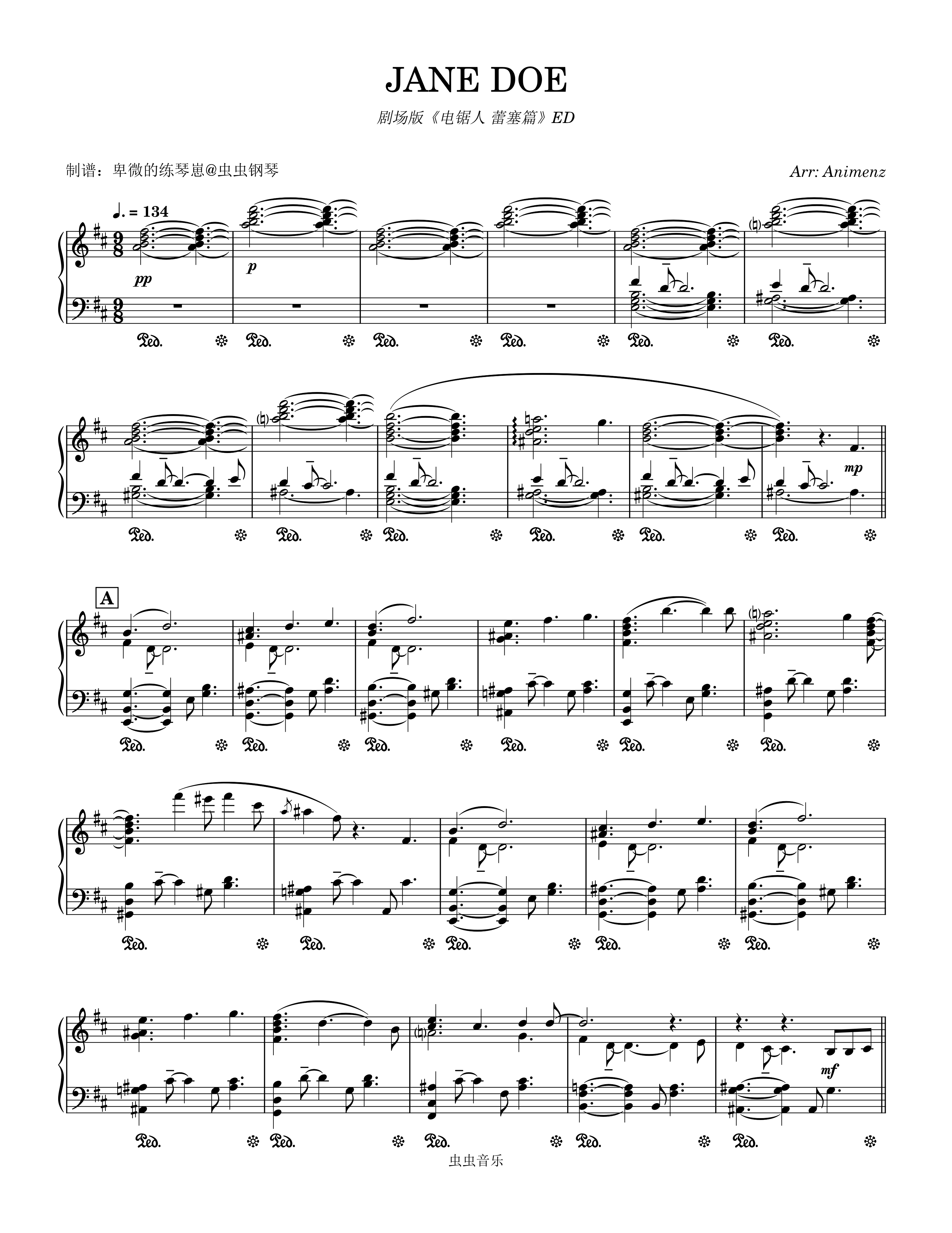 钢琴谱:[Animenz] - JANE DOE - 剧场版《电锯人 蕾塞篇》ED - [转录]