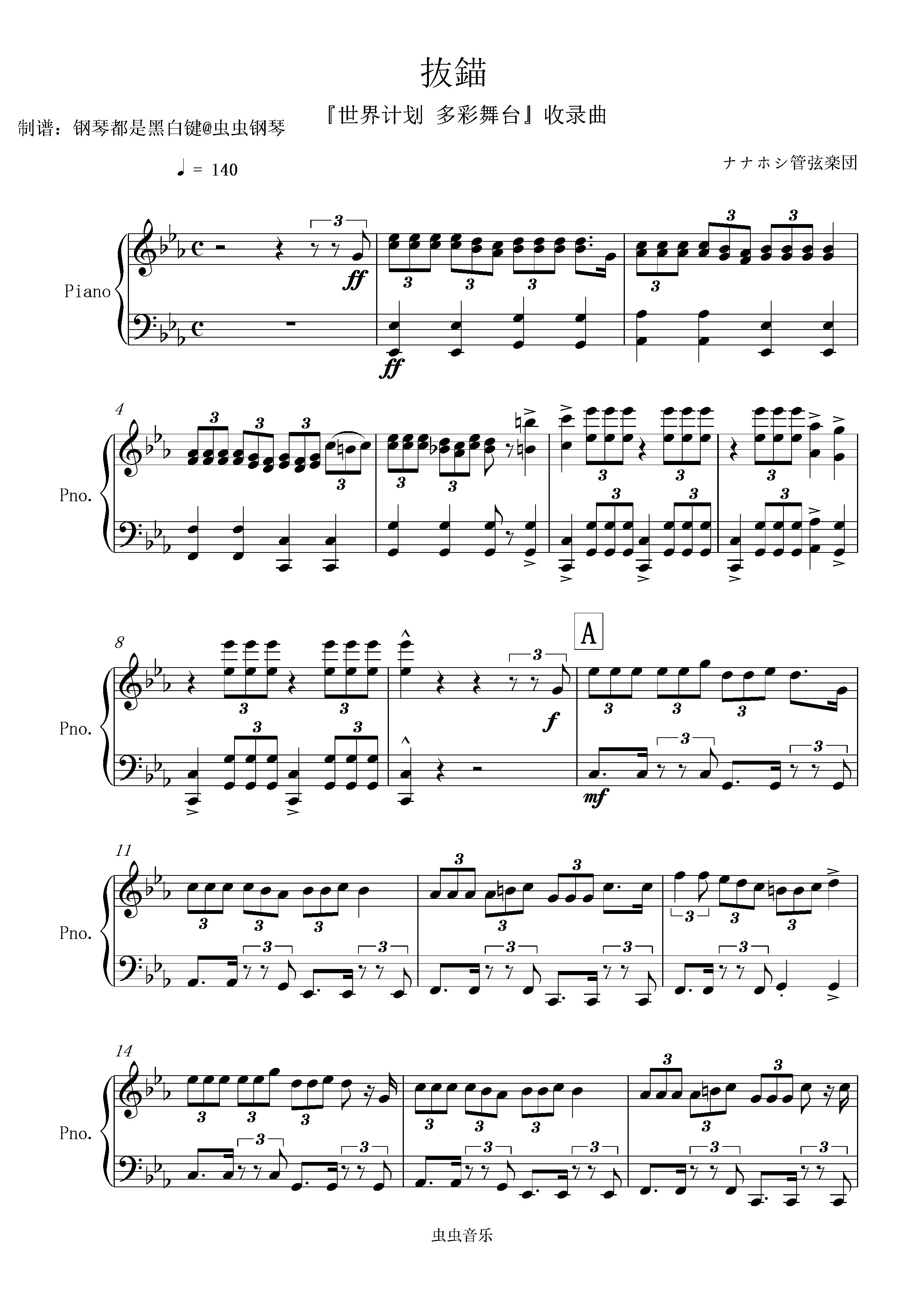 抜錨钢琴简谱 数字双手 ナナホシ管弦楽団