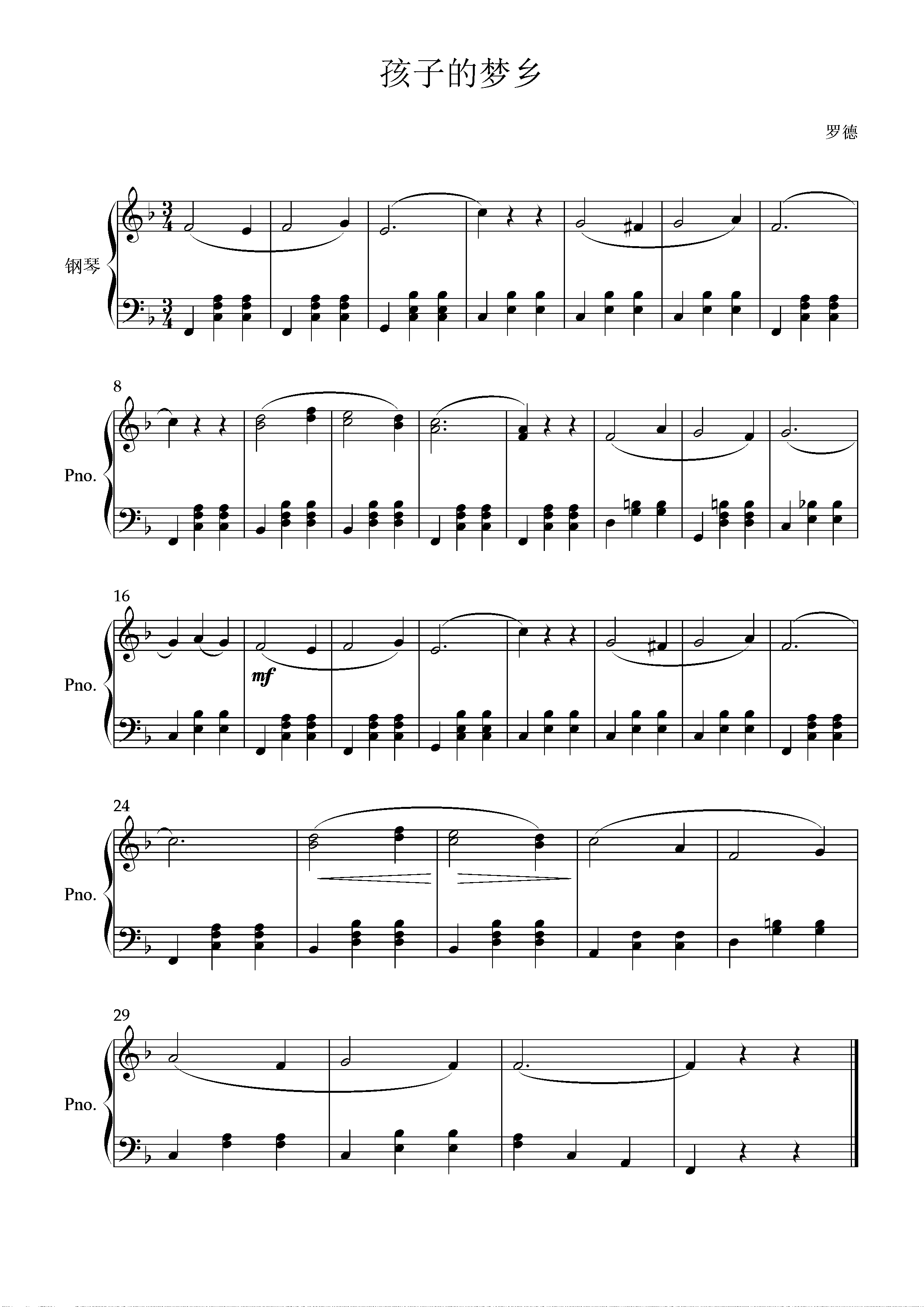 • 孩子的梦乡钢琴简谱 F调 数字双手